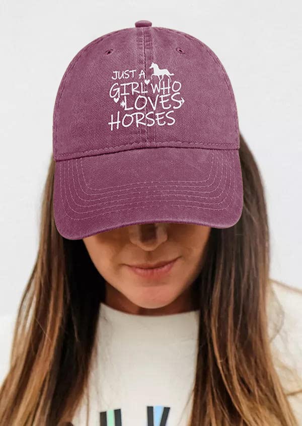 Just Girl Who Loves Horse Hat Baseball Cap for Women Adjustable Trendy Hats Cotton Wine Red