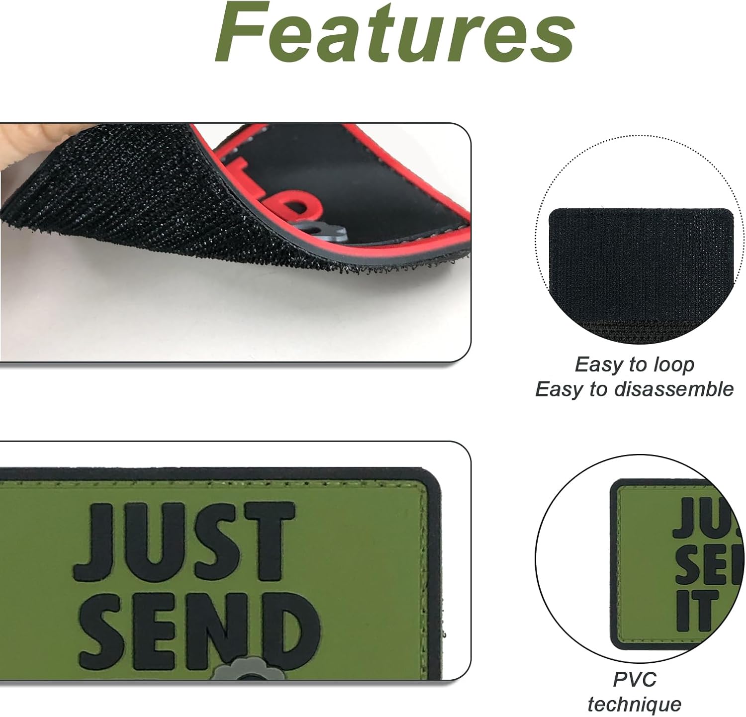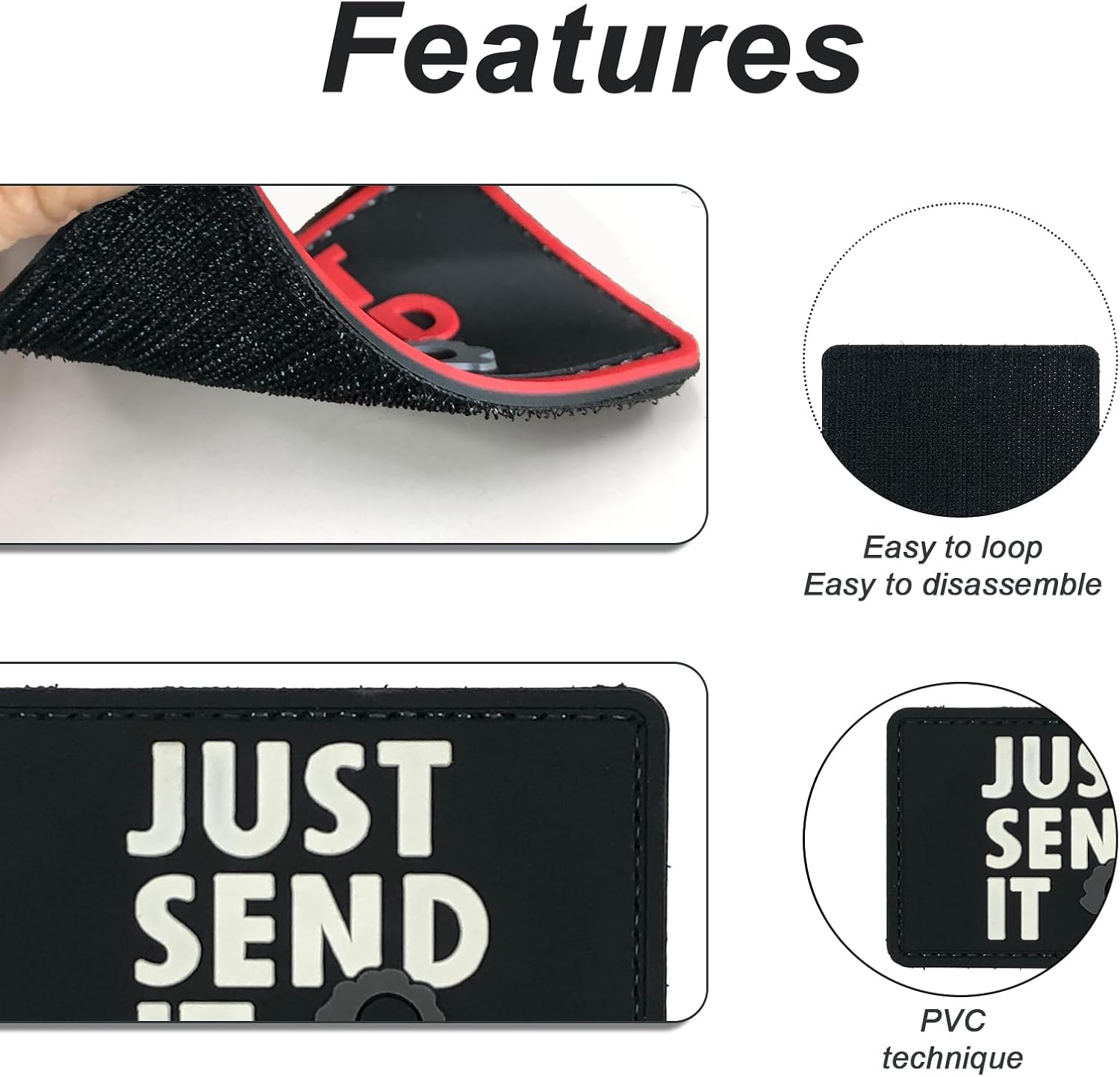 uuKen Just Send It Patch PVC with Hook Fastener Back 3"×2" for Hats Caps Clothing Vests Bags Backpacks. This patch is well made. ,Great for your gears like jackets,vests,hats,backpacks,etc.