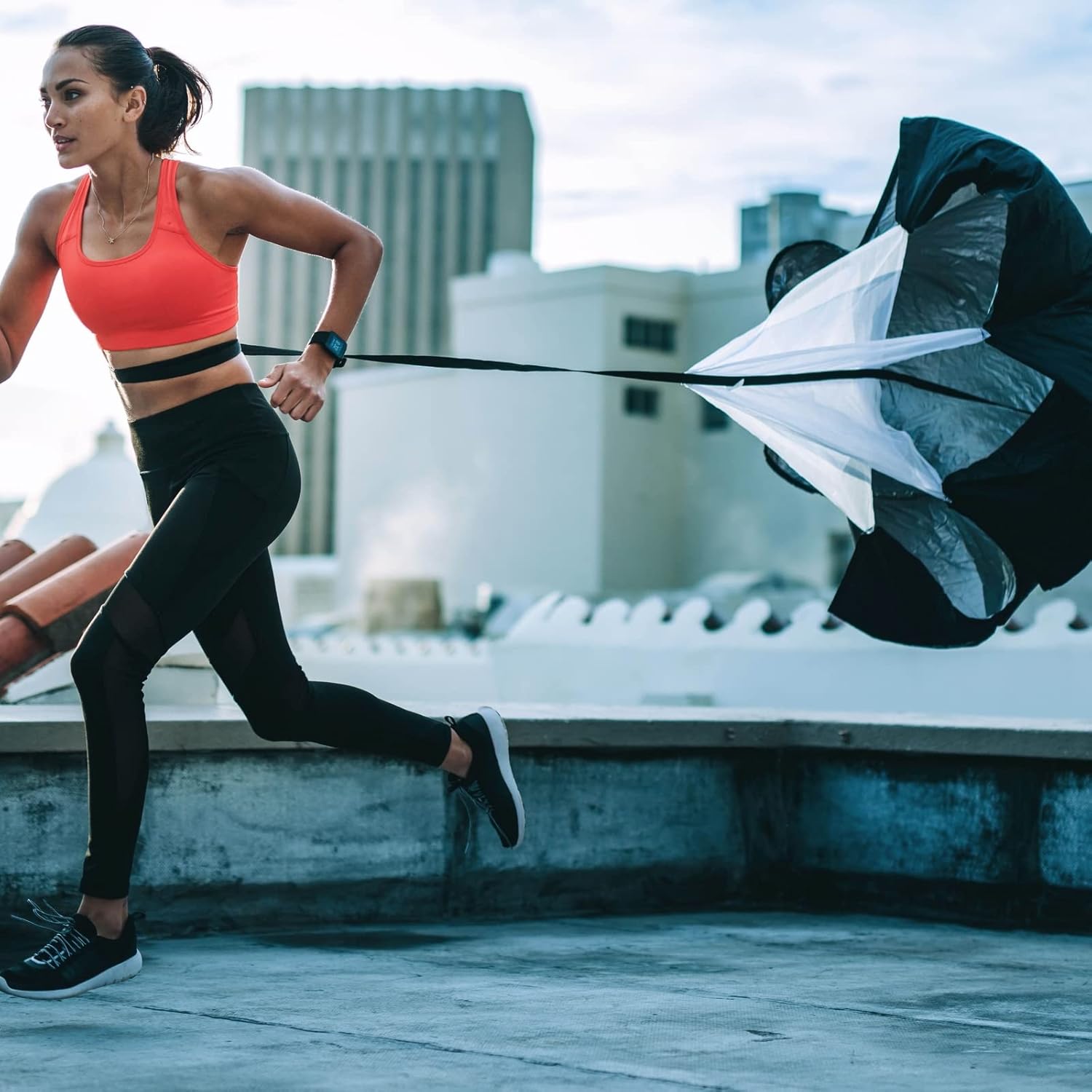 Improve leg strength, running speed, stamina, and endurance by working against the wind with this waist parachute.