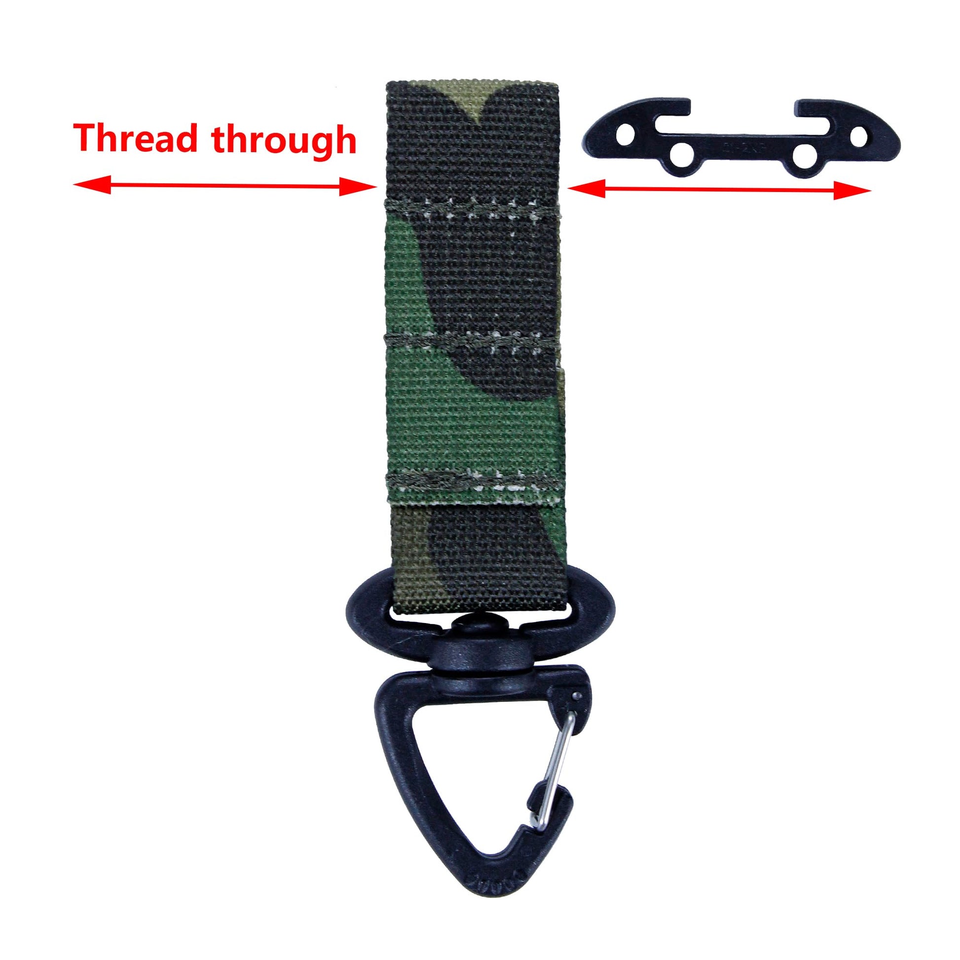 - MOLLE/PALS compatible of molle glove clip: The tactical carabiner clip features with nylon webbing which is 1" in width and 2.80" in height. The MOLLE T-mount thread through nylon webbing to fix the molle belt clip on MOLLE/PALS system. You can install this tactical gear clip on duty belt, hunting vest, chest pack or another thing which has MOLLE/PALS system