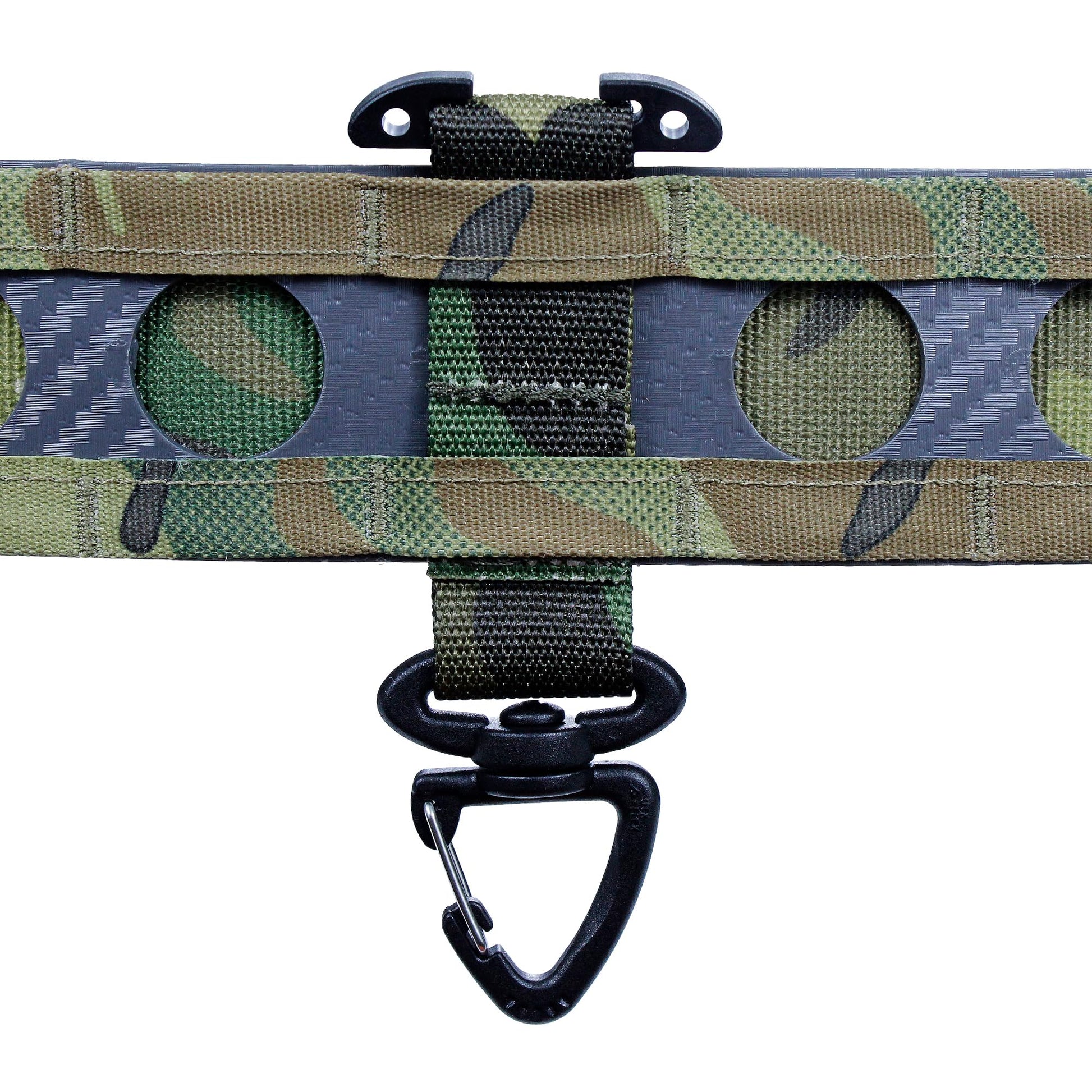 Details: Tee Mount bar on top allows 25mm webbing tactical gear clip to be fitted through a PALS slot. The height of tactical carabiner can be adjusted. Swivel Triangle Snap Hook is made of high strength and lightweight plastic. The tactical carabiner hook can carry your tactical gloves, keychain and another tactical things. The molle clip features with nylon webbing which is 1" in width and 2.80" in height. The MOLLE T-mount thread through nylon webbing to fix the molle clip on MOLLE/PALS system. You can install this tactical gear clip on duty belt, tactical vest, chest pack or another thing which has MOLLE/PALS system.