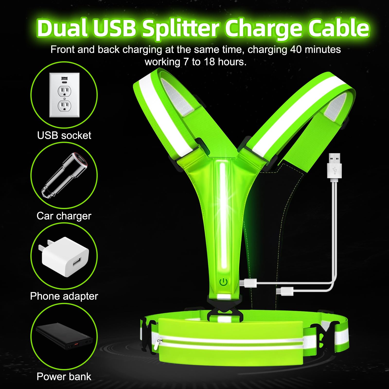 - Dual Lights, Triple Modes for Ultimate Visibility: Experience enhanced safety with our running light vest’s front and rear lights, providing powerful illumination. Choose from three dynamic light modes—steady on, fast flashing, and slow flashing—for optimal visibility in the dark. This reflective running vest acts as a reliable warning to distant vehicles, reducing the risk of accidents and ensuring the safety of you and your family.