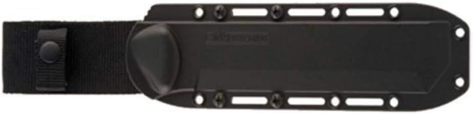The Becker Tac Tool features a 7 in. fixed black partially serrated chisel blade made from 1095 Cro-van steel and includes a belt cutter with a black grivory handle that includes a lanyard hole. Knife has an overall lenght of 12 1/2 ines with a black hard plastic sheath and has a green canvas micarta handle purhcase option. ATTRIBUTES Blade Detail: Plain Edge Blade Length (inches): 7.00 Blade Material: Carbon Steel Black Carry System: Glass Filled Nylon Sheath Handle Material: GFNPA66 Overall Length (inches): 12.50