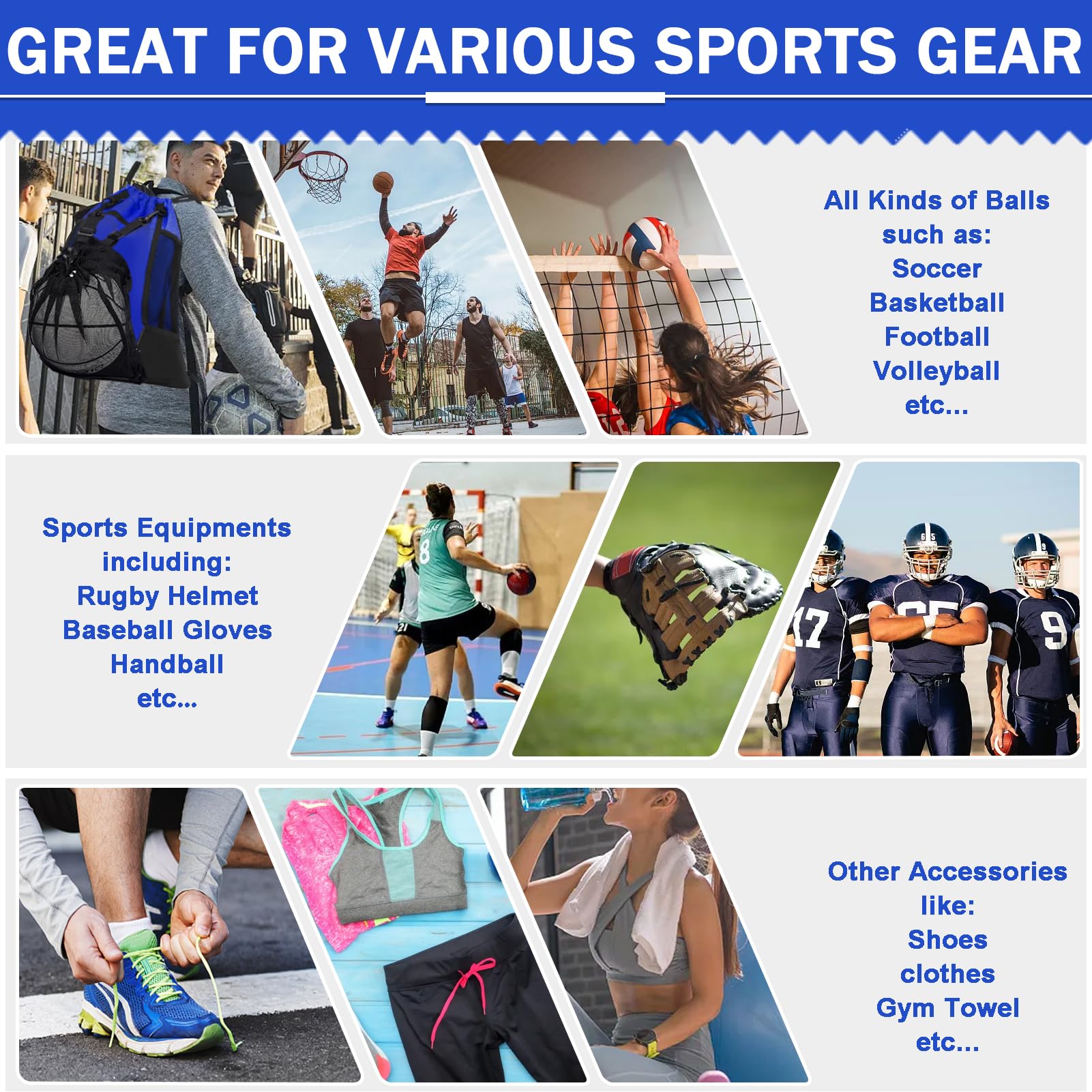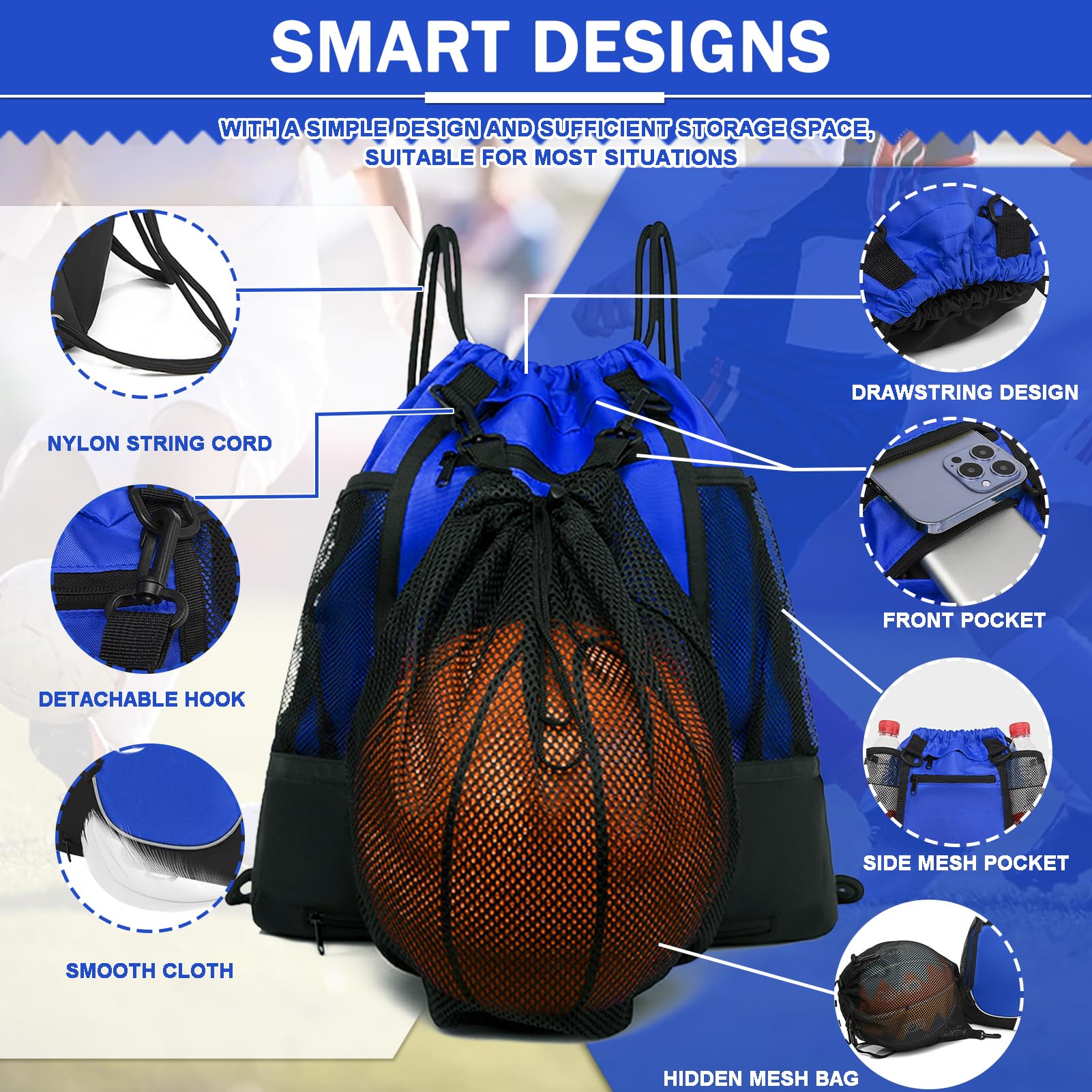 KAEGREEL Drawstring Soccer Bag Foldable Basketball Football Backpack Versatile Sports Bag with Detachable Ball Mesh Bag for Gym Volleyball Baseball Yoga, Blue