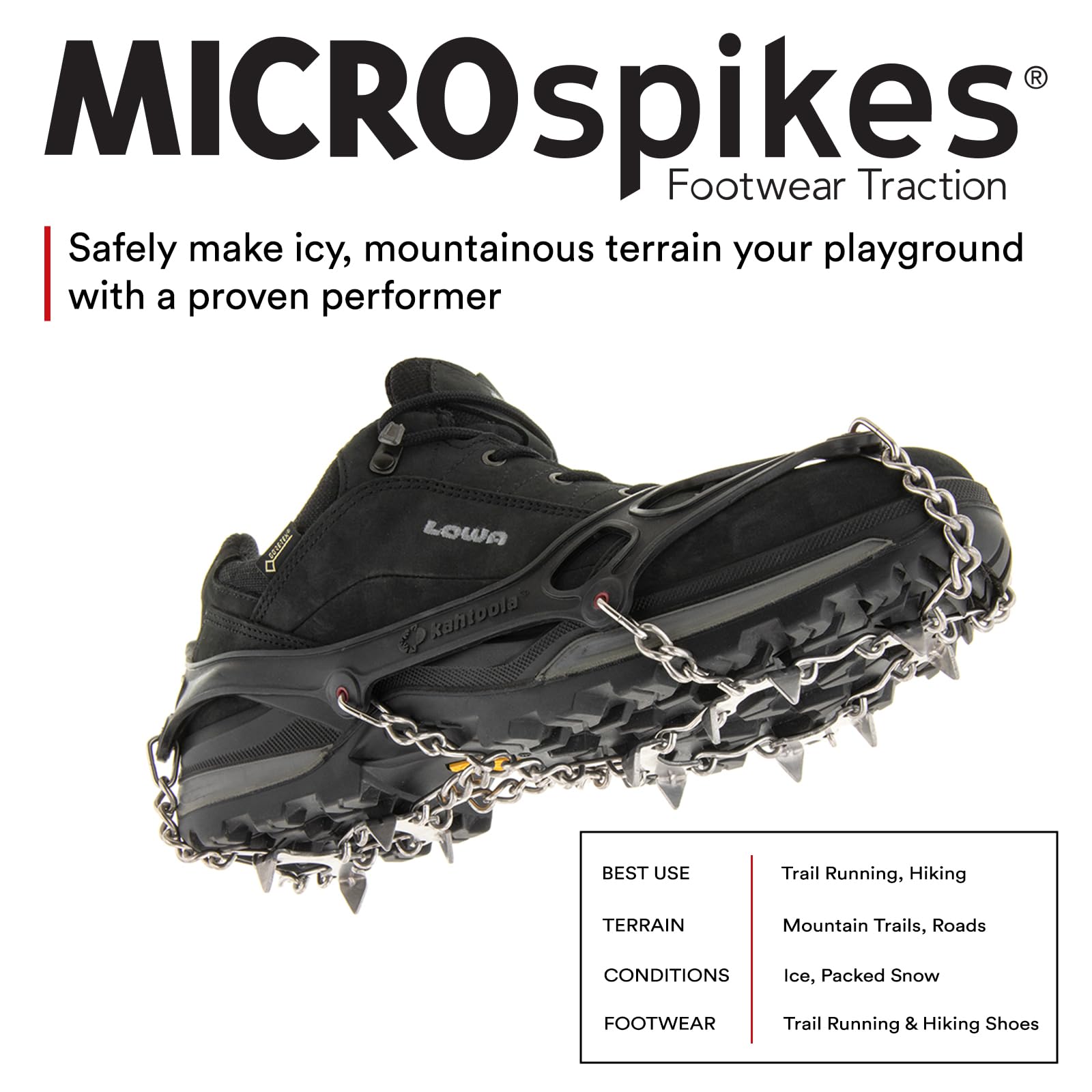 - BEST FOR: Winter hiking, backpacking, ice-trekking, ice fishing and trail-running. The MICROspikes are designed for all-around use and your backcountry winter adventures! Ideal for hiking shoes and boots and to be used on mountain trails.