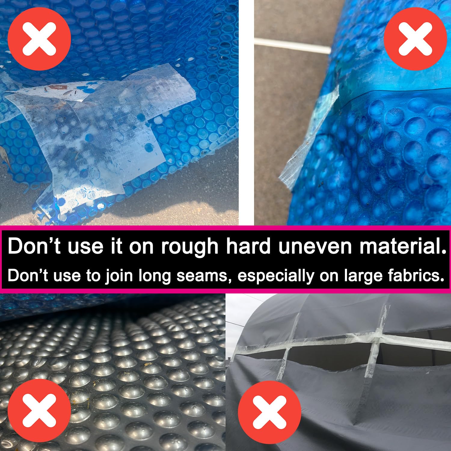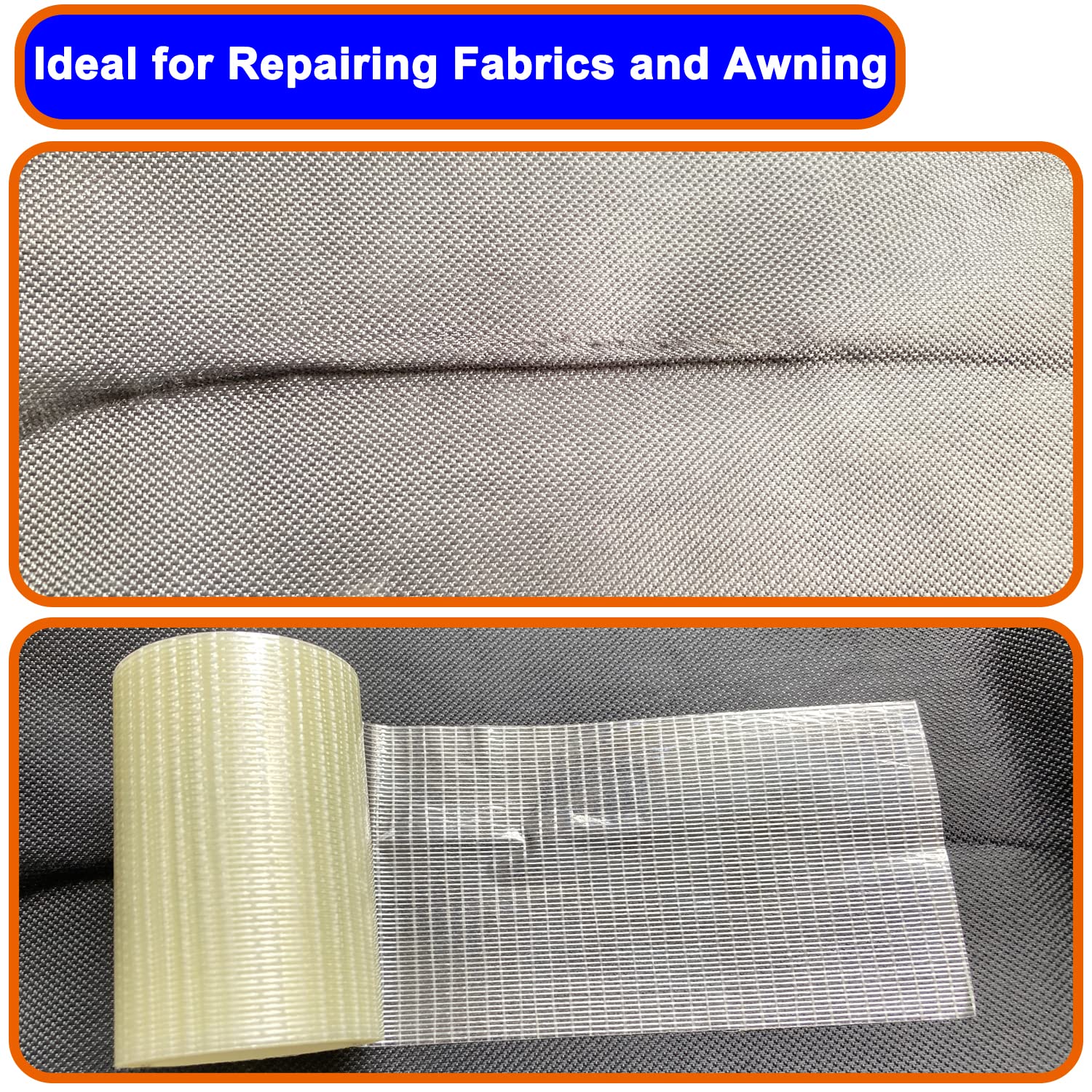 - 【Ultrastrong Stickness】Awning repair tape is made of a high density material that is stronger than regular repair tape and has superb adhension, and its clear vinyl surface has excellent waterproof, can widely used indoors and outdoors. Fiberglass repair tape can repair products in a variety of materials, such as canvas, leather, vinyl, fabric, tarps, glass, PVC plastic, tarpaulin, etc.