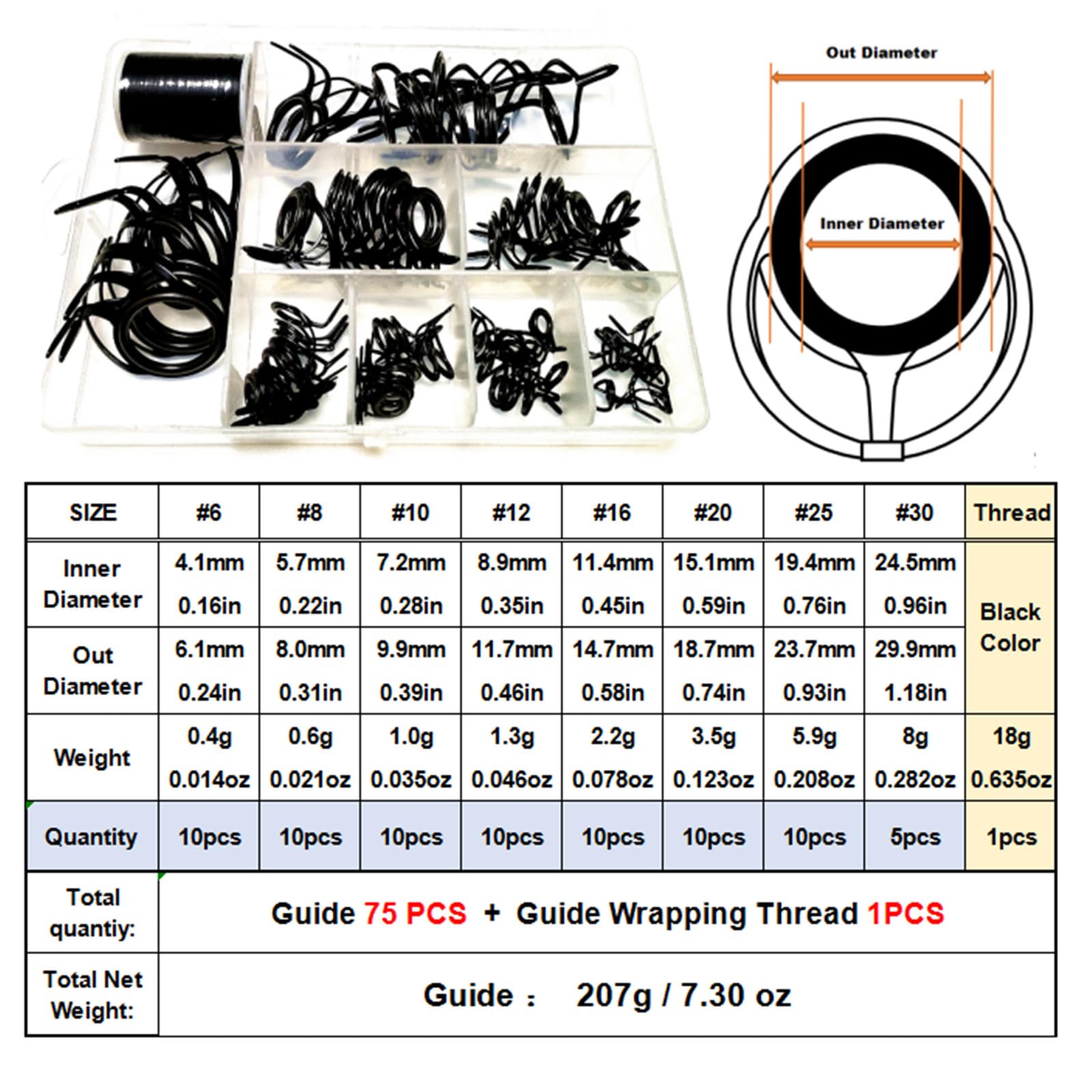 Details: Kalavarma Fishing Rod Guides Repair Kit Casting Fishing Rod Guides Replacement Set stainless Steel Ceramic Ring Fishing Rod Repair Guides