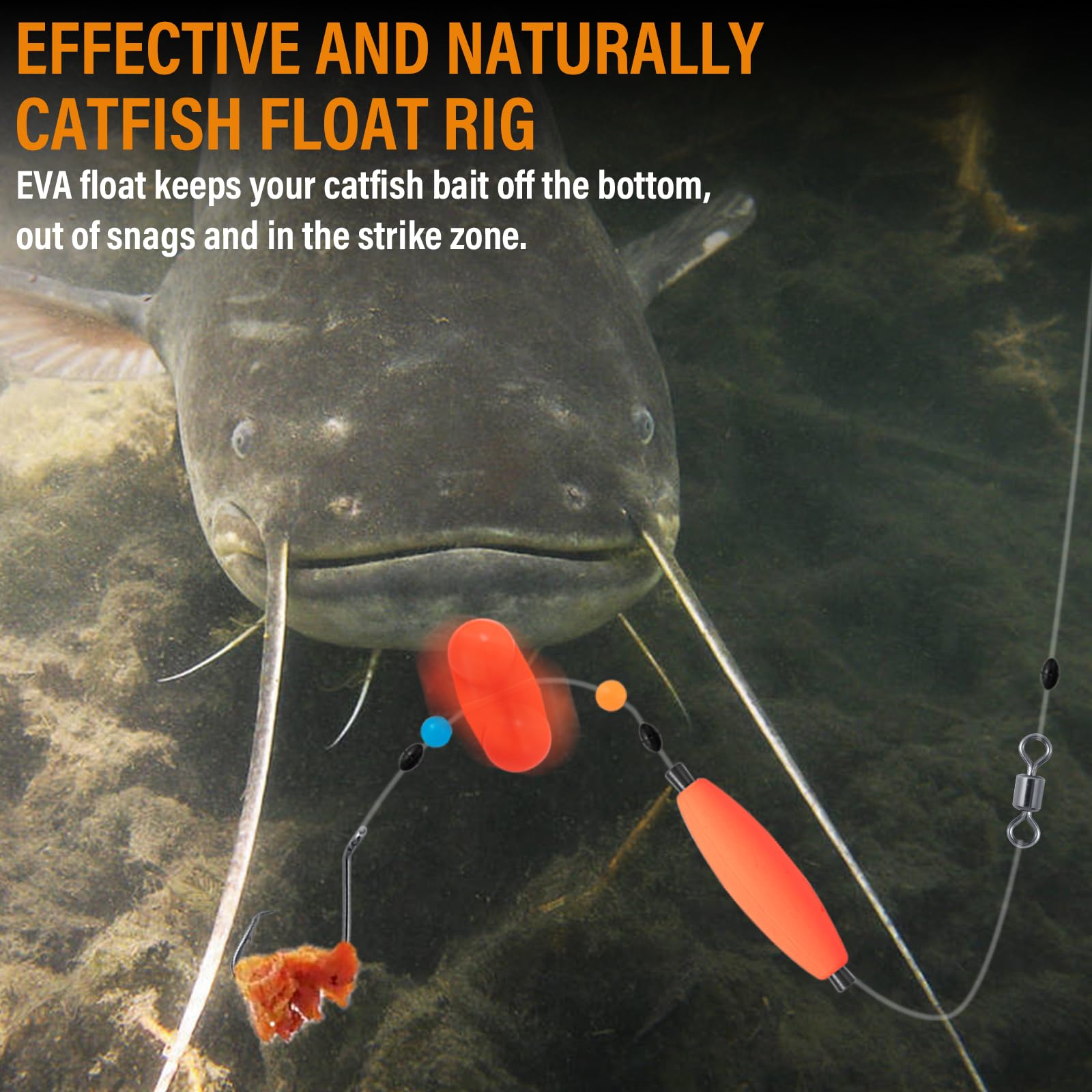 - MAKE YOUR OWN NATURALLY EVA PEG FLOAT CATFISH RIG: Catfish do often feed on or near the bottom but they also feed in all parts of the water column as well. Our two plug eva peg float could slide back and forth, which can get the bait in front of the fish regardless of where they’re feeding in the water column.