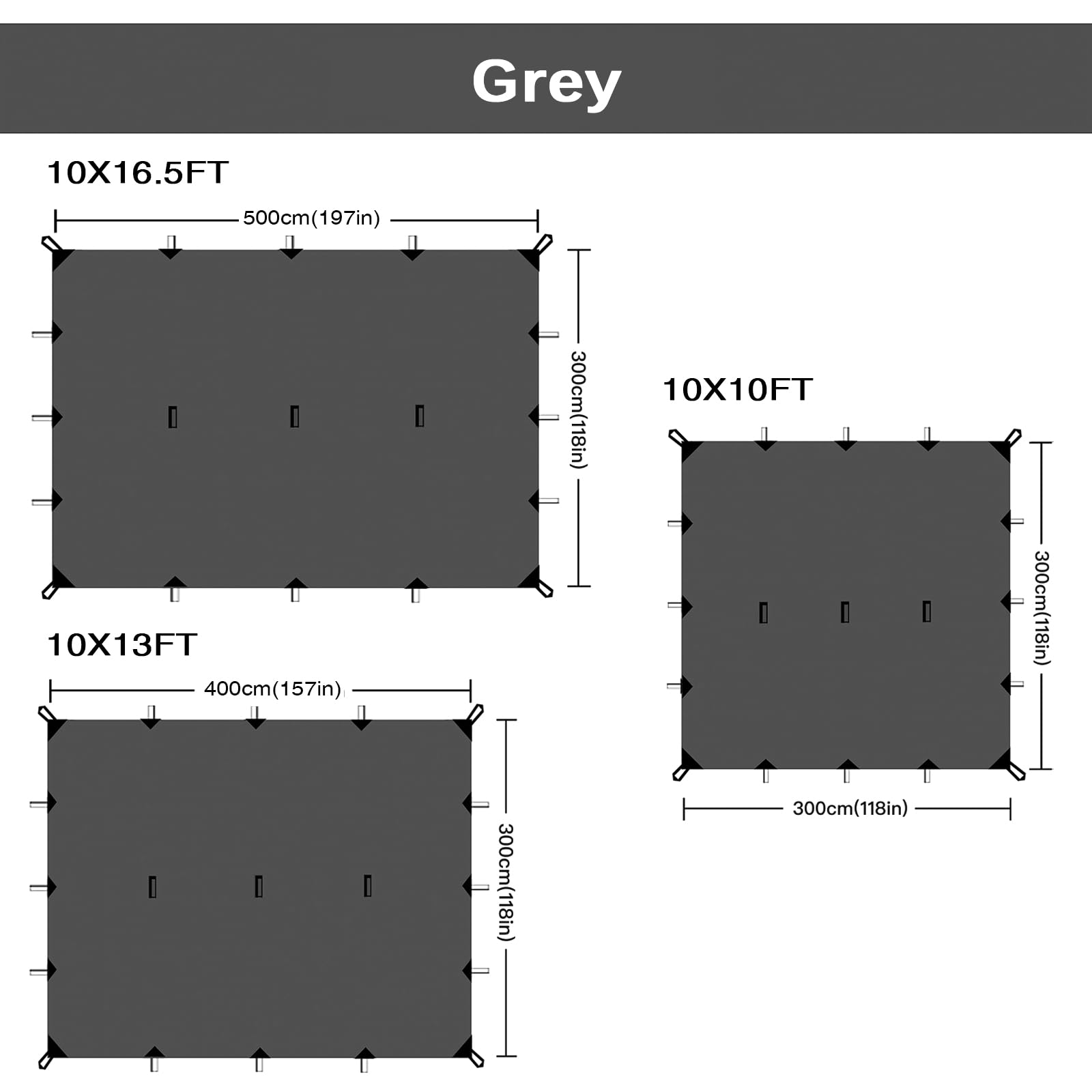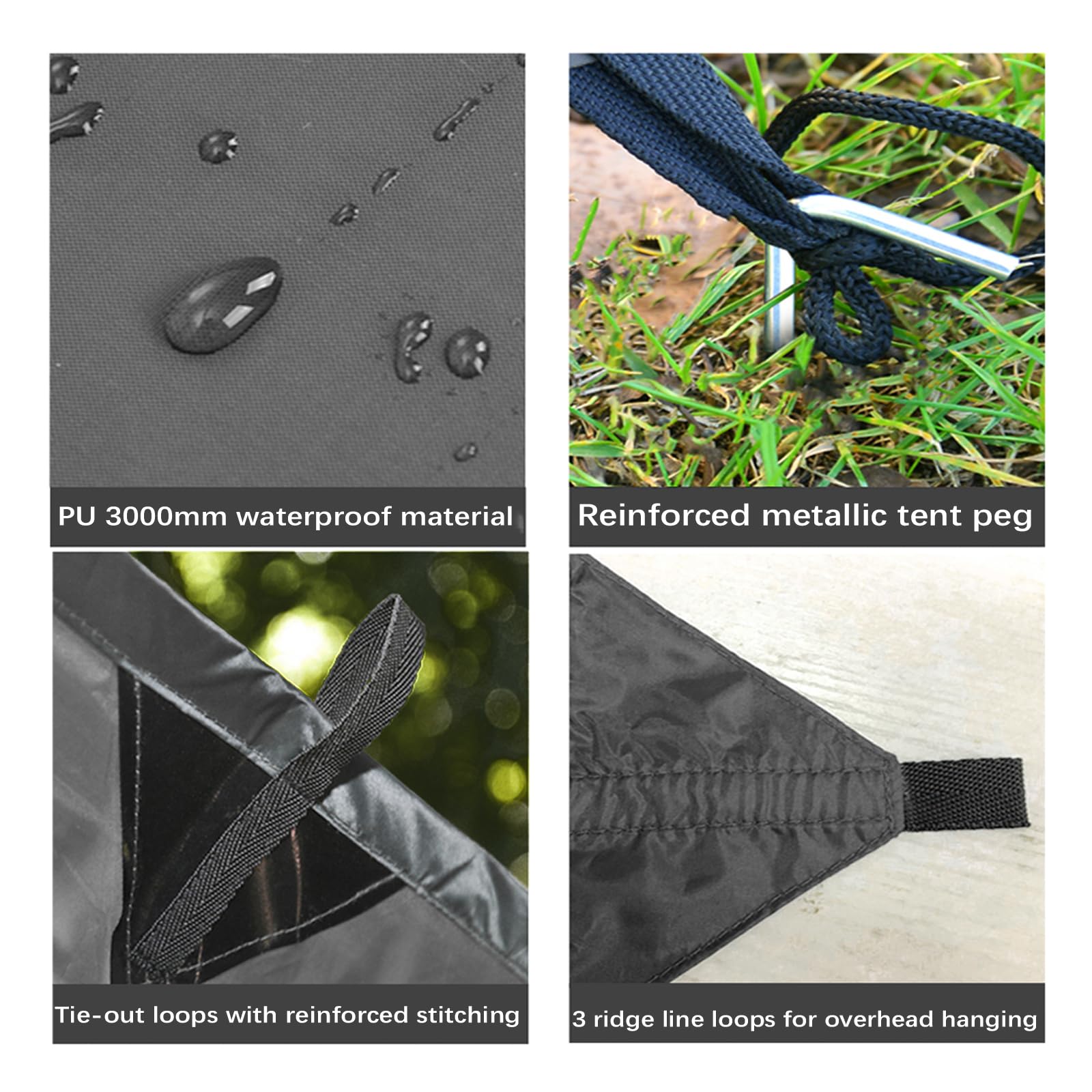 - [Waterproof & UV Protection]The waterproof tarp is made of high quality 210T Polyester with strong PU coating, weather-resistant.It can provide a safe shelter for you to escape from a sudden downpour and create dry hangout space for during a wet trip.