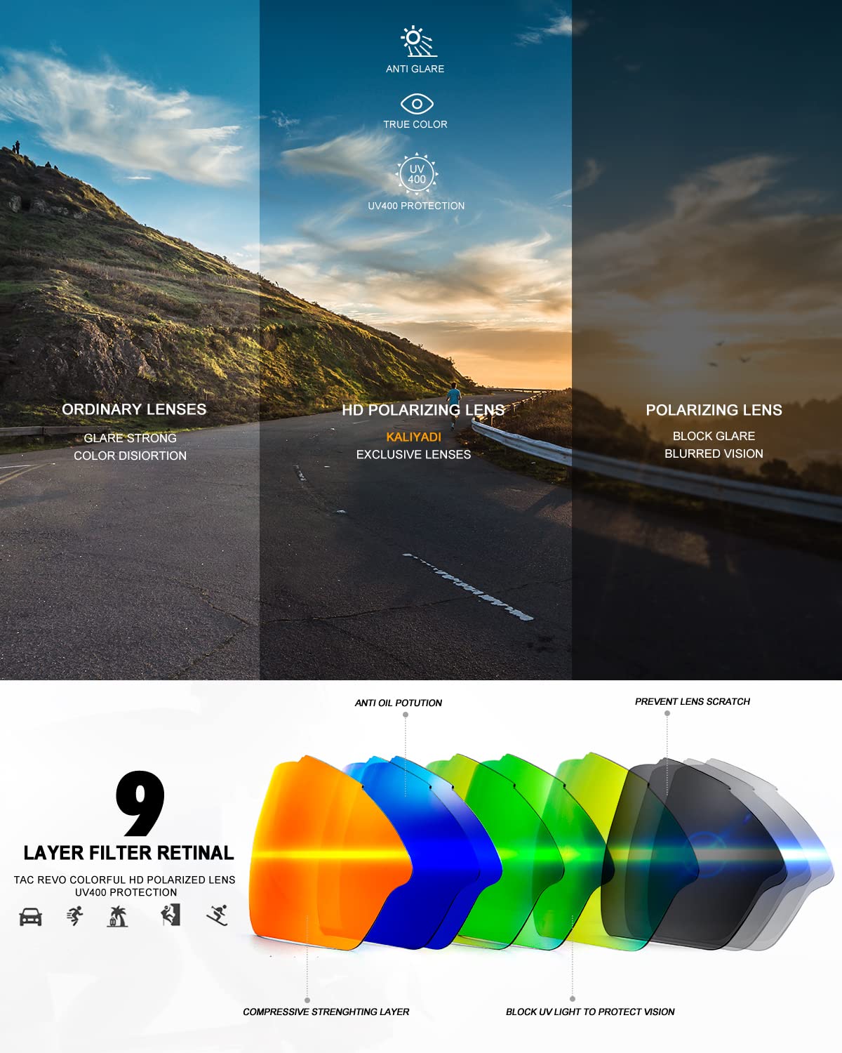 - Ready for Outdoors: Experience versatility at its best with KALIYADI sunglasses for men polarized, designed to cater to all athletic endeavors. Whether you are running, cycling, fishing, hiking or driving, these fishing sunglasses for men provide the ultimate in protection and style. Engineered with durable materials and offering complete UV400 protection, they're your ideal companion for any sport, any day