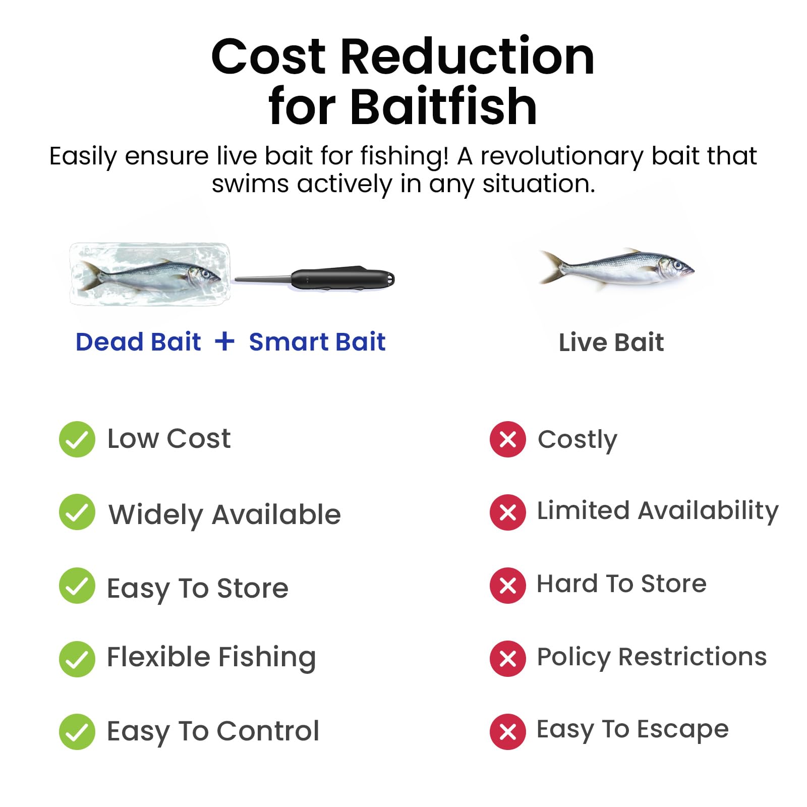 - Revive Your Dead Bait Fish: Smart Bait Pro precisely replicates the swimming frequency and realistic movements of more than 20 types of bait fish through advanced biomimetic software algorithms, effectively triggering the instinctive predatory response of fish and significantly increasing catch rates across all water environments.