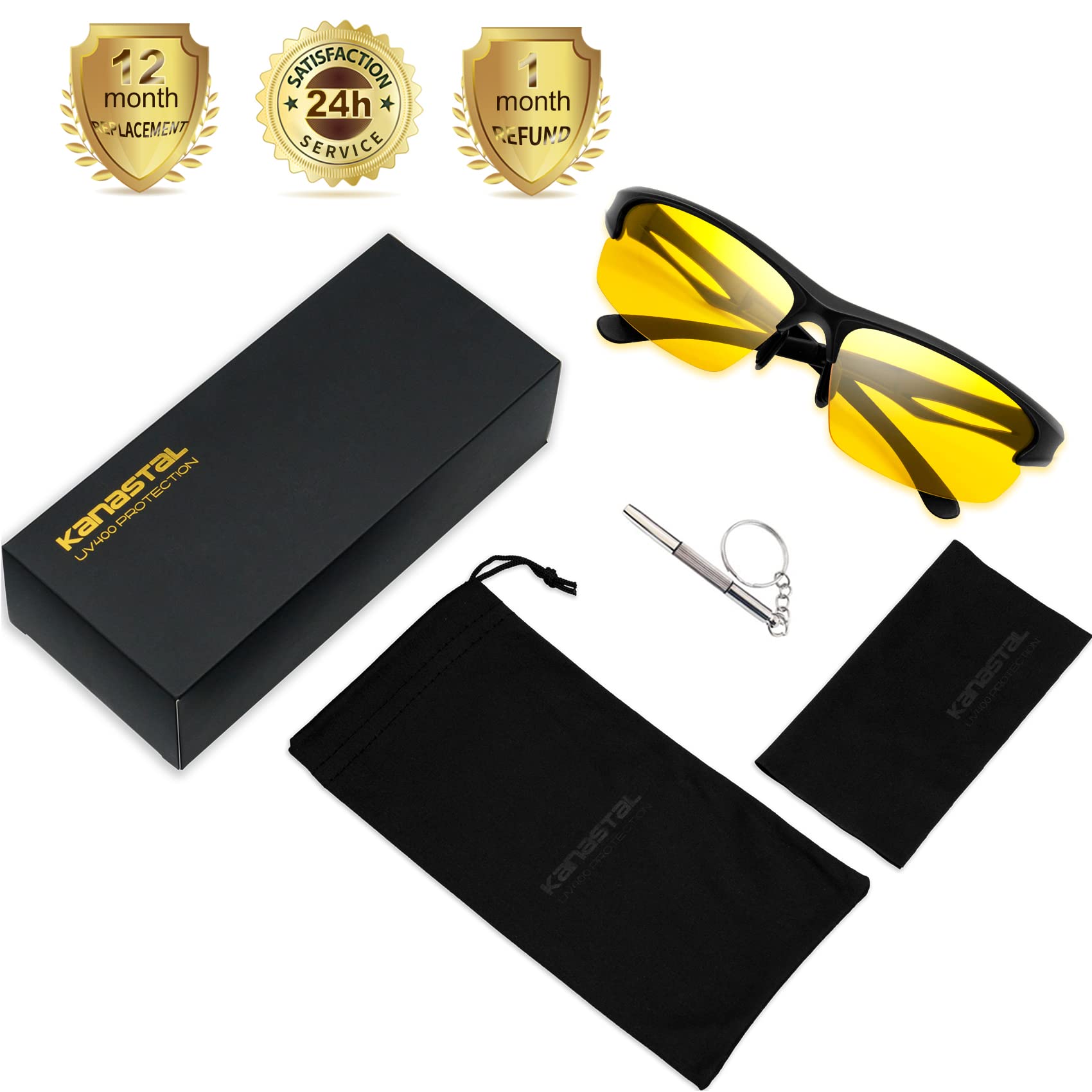- Note: The design of KANASTAL night glasses is aimed at reducing the intensity of oncoming headlights, rather than completely eliminating light, as completely eliminating light can be very dangerous during driving. KANASTSL half frame sports sunglasses are a great choice for both night vision glasses and sports sunglasses