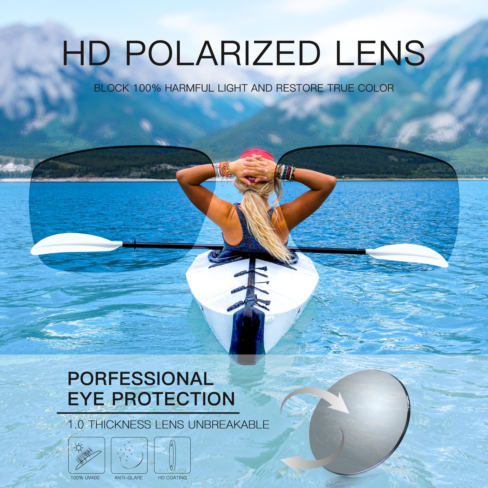 - HD POLARIZED SUNGLASSES - The polarized lenses reduce glare, eliminate reflections, and scatter light, restoring colors to their truest form and providing sophisticated eye protection. The wide side design can also reduce side glare, which is convenient for fishing enthusiasts.