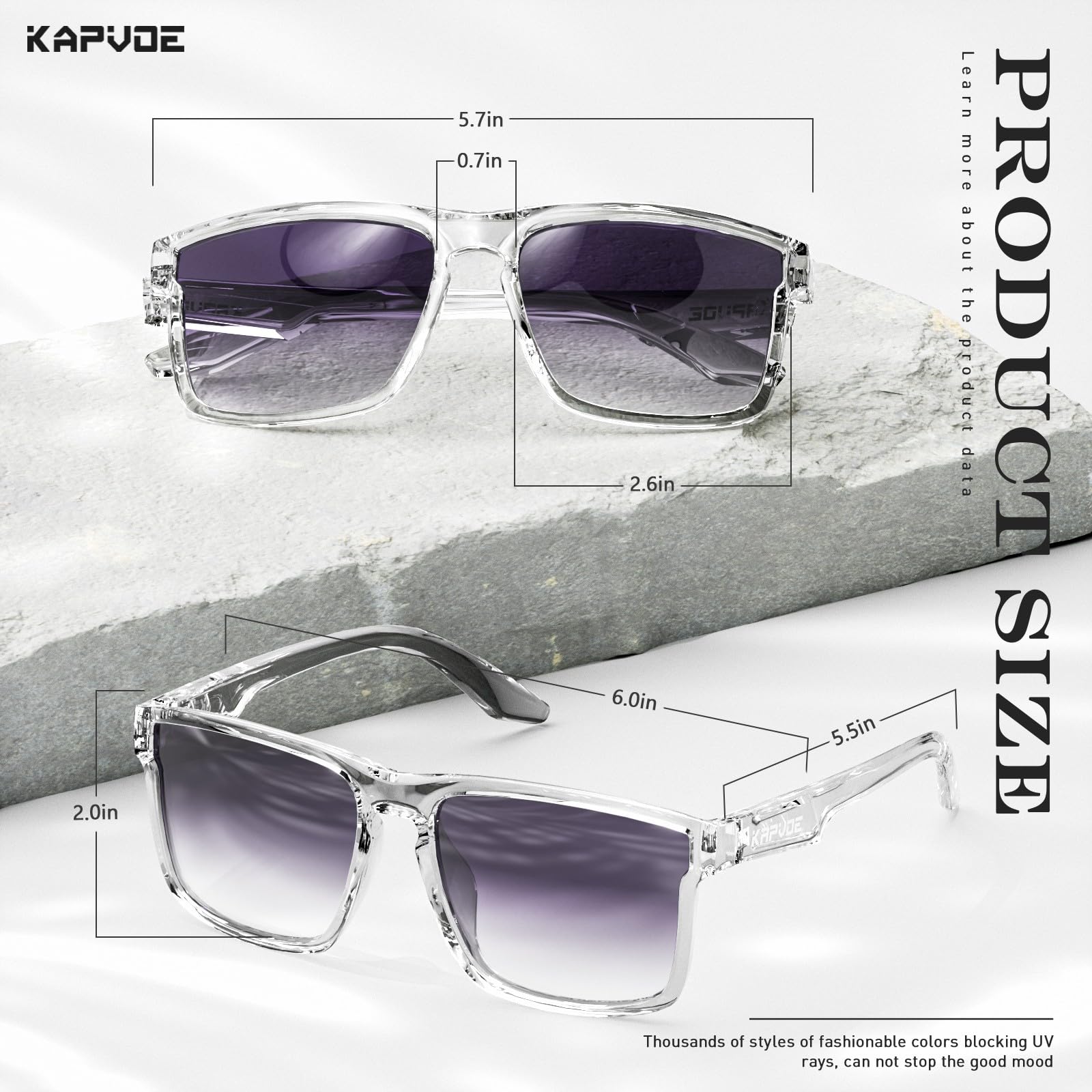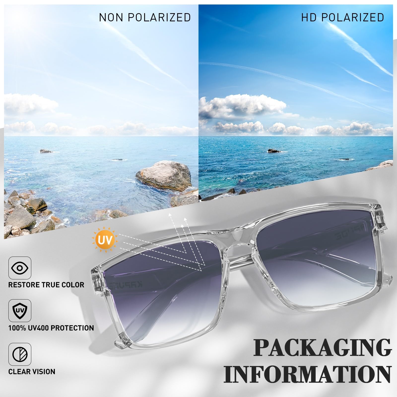 - 【GIFT PACKAGE】It is a gift package ready, making it an excellent practical gift idea for your friends and family! The package includes KAPVOE box*1, polarized sunglasses*1, microfiber glasses*1, cleaning cloth*1, and polarized test card*1.