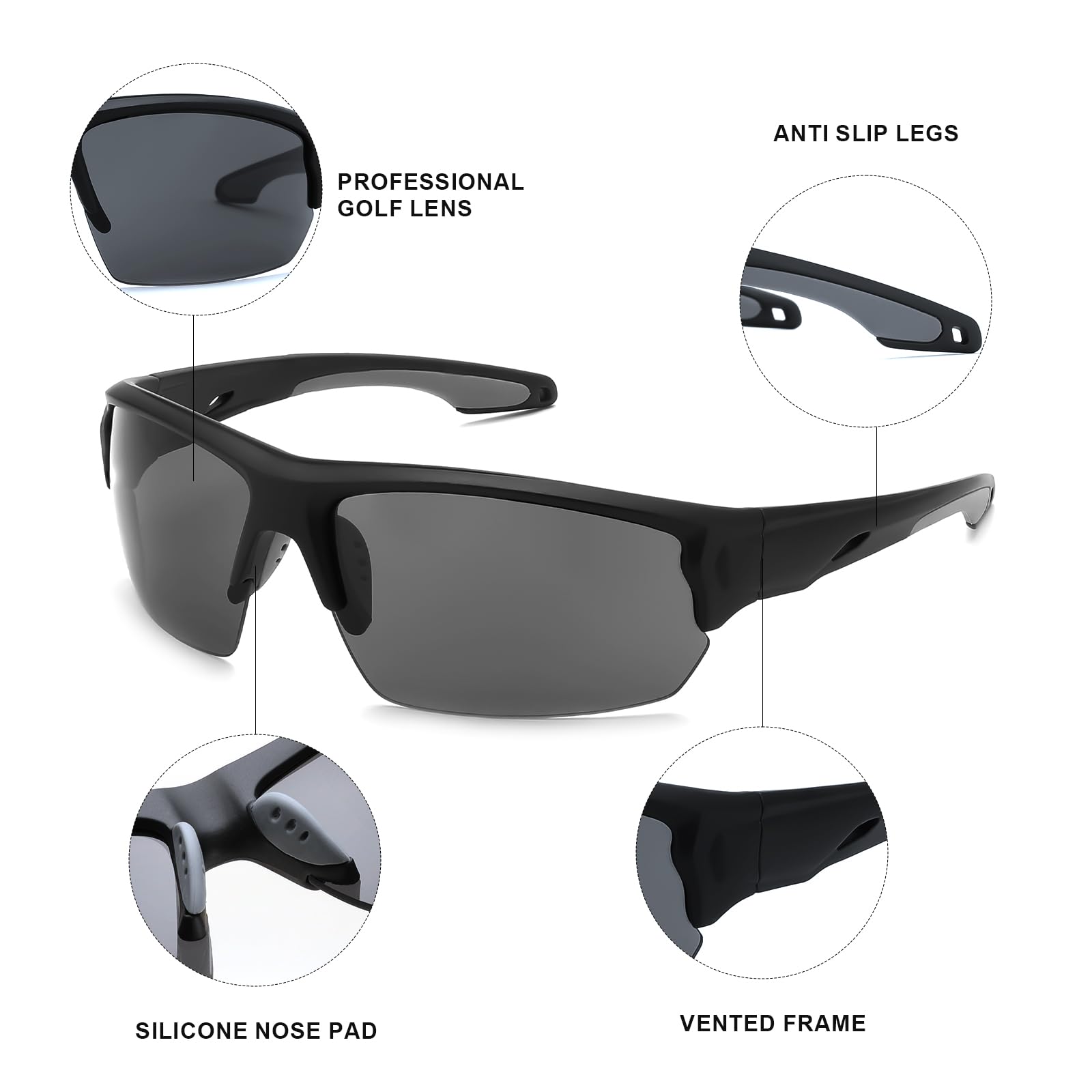 - Comfortable PC Frame:Peculiar PC material frame has extremely high impact resistance,which can effectively protect the glasses even during sports or small collisions;anti-slip temples will ensure the glasses stay firmly in position when you swing;with a super light weight,they provide a comfortable wearing experience in all day