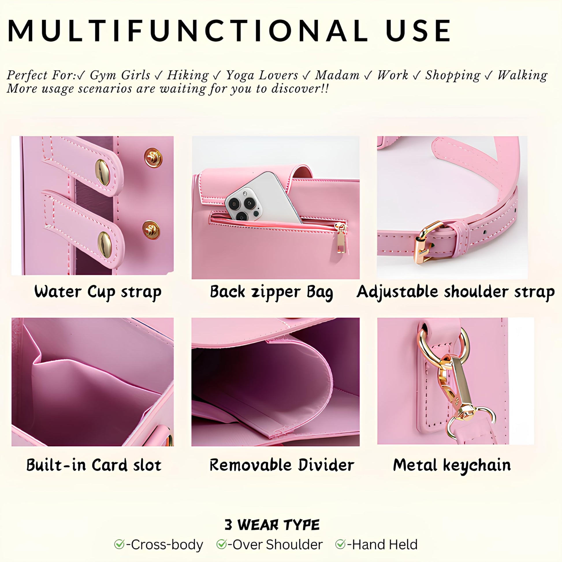 Kascool Outdoor Portable Crossbody Water Cup Storage Bag, Compatible with Stanley & Most Water Bottles, Crossbody Bag with Sports Water Bottle Holder for Women | Adjustable Shoulder Strap (Pink)