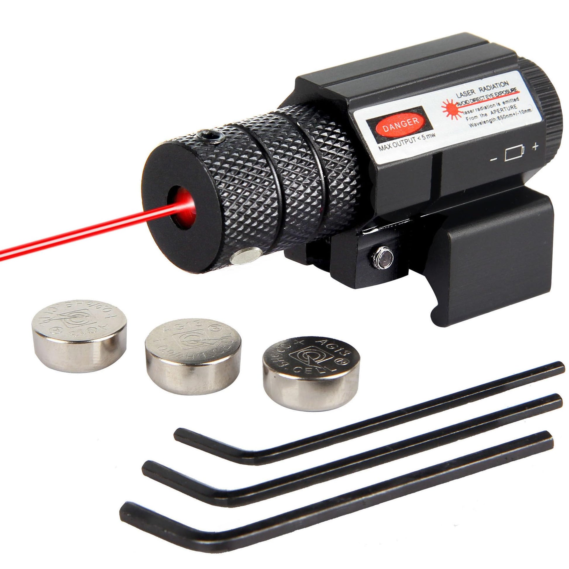 - Package Includes: 1x Red Laser Sight with 21mm Rail Mount, 2 x Wrenches, 3 x Batteries.