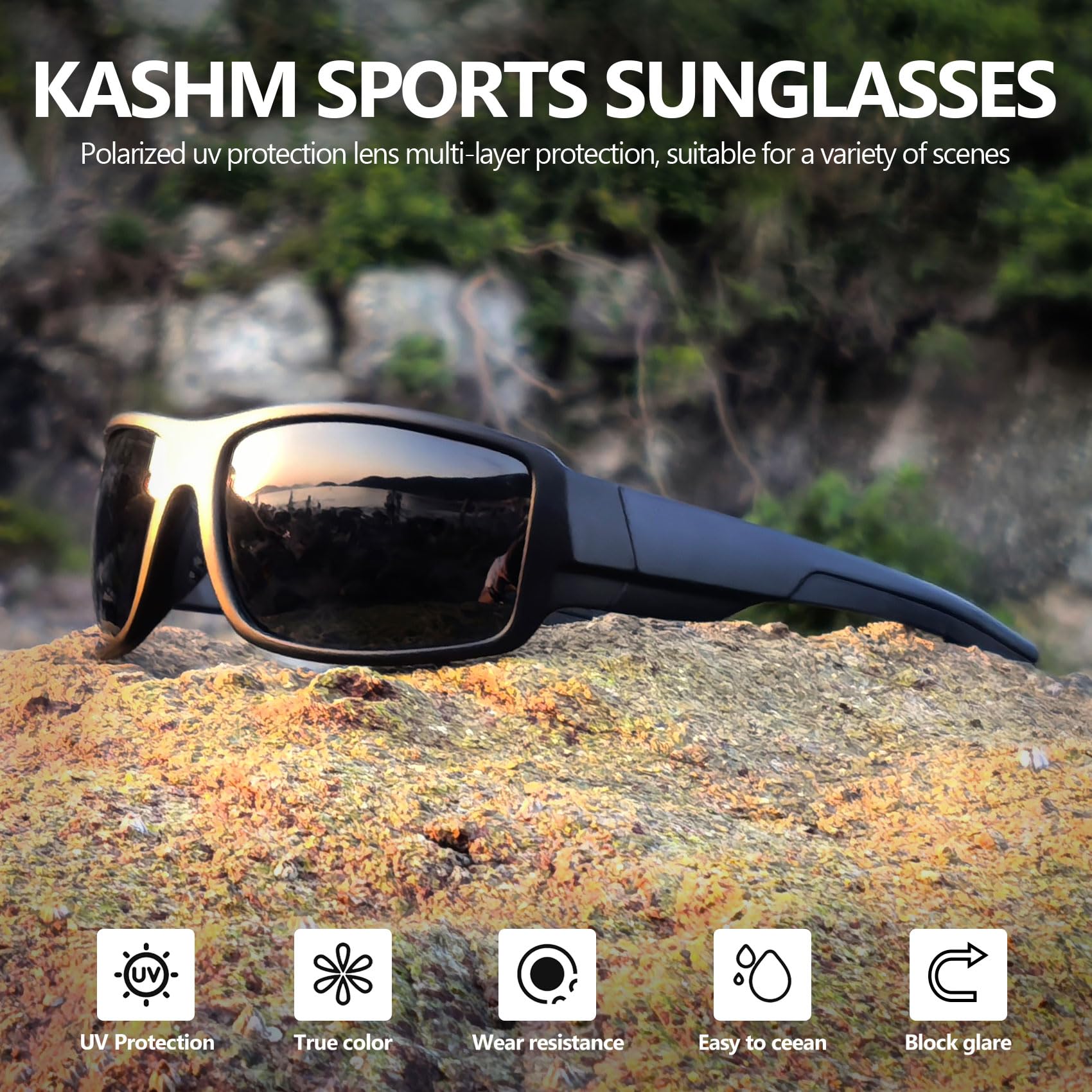 - Whether you like fishing, running, biking, driving, golf, baseball or rock climbing, Kashm polarized sports sunglasses are perfect for these sports. These men's fishing sunglasses offer clear vision, a comfortable fit that stays in place - even during the most intense sports.