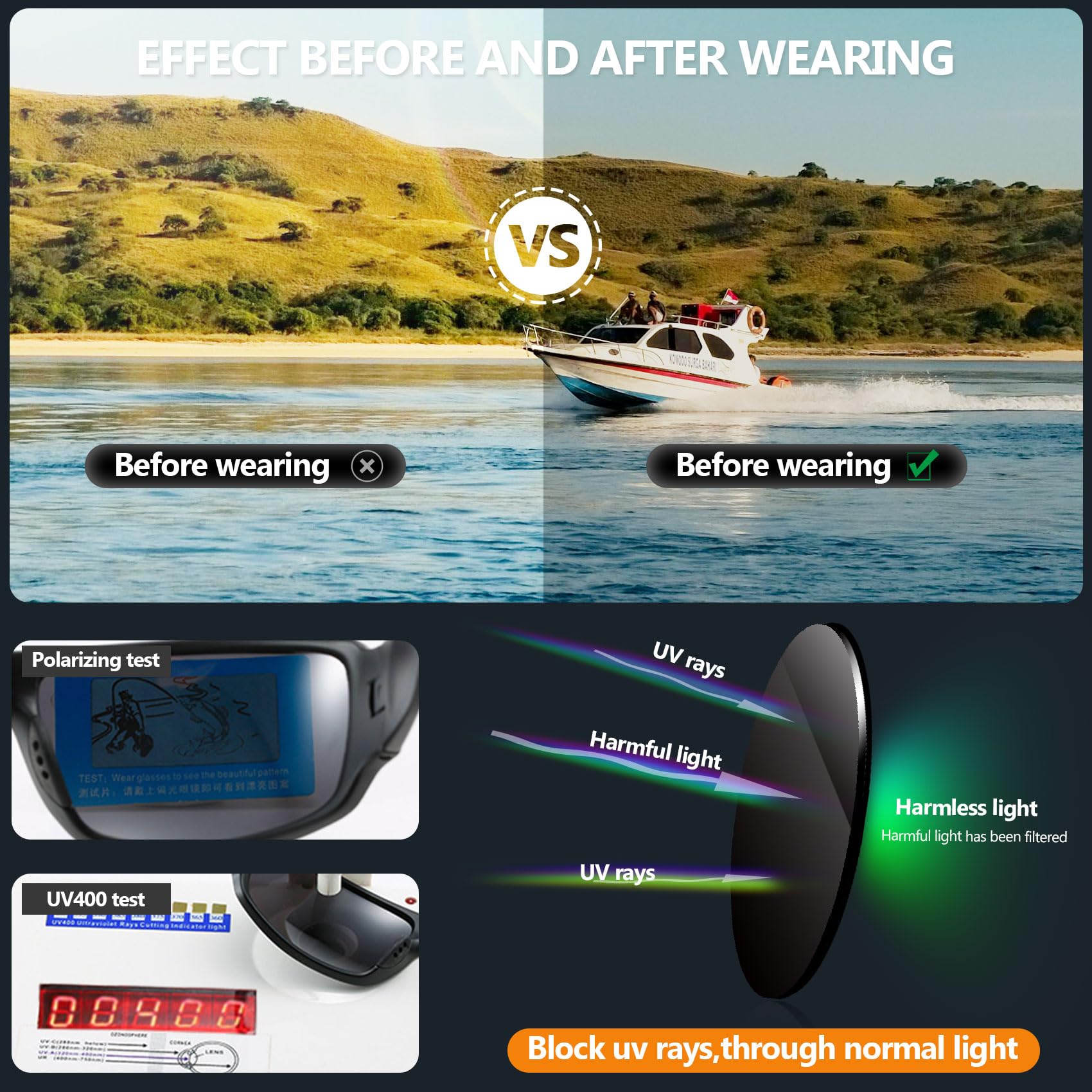 - HD POLARIZED UV PROTECTION LENS - It completely blocks harmful UVA and UVB rays. These lenses are scratch-resistant and oil-resistant, and they balance colors to give you a better visual experience.
