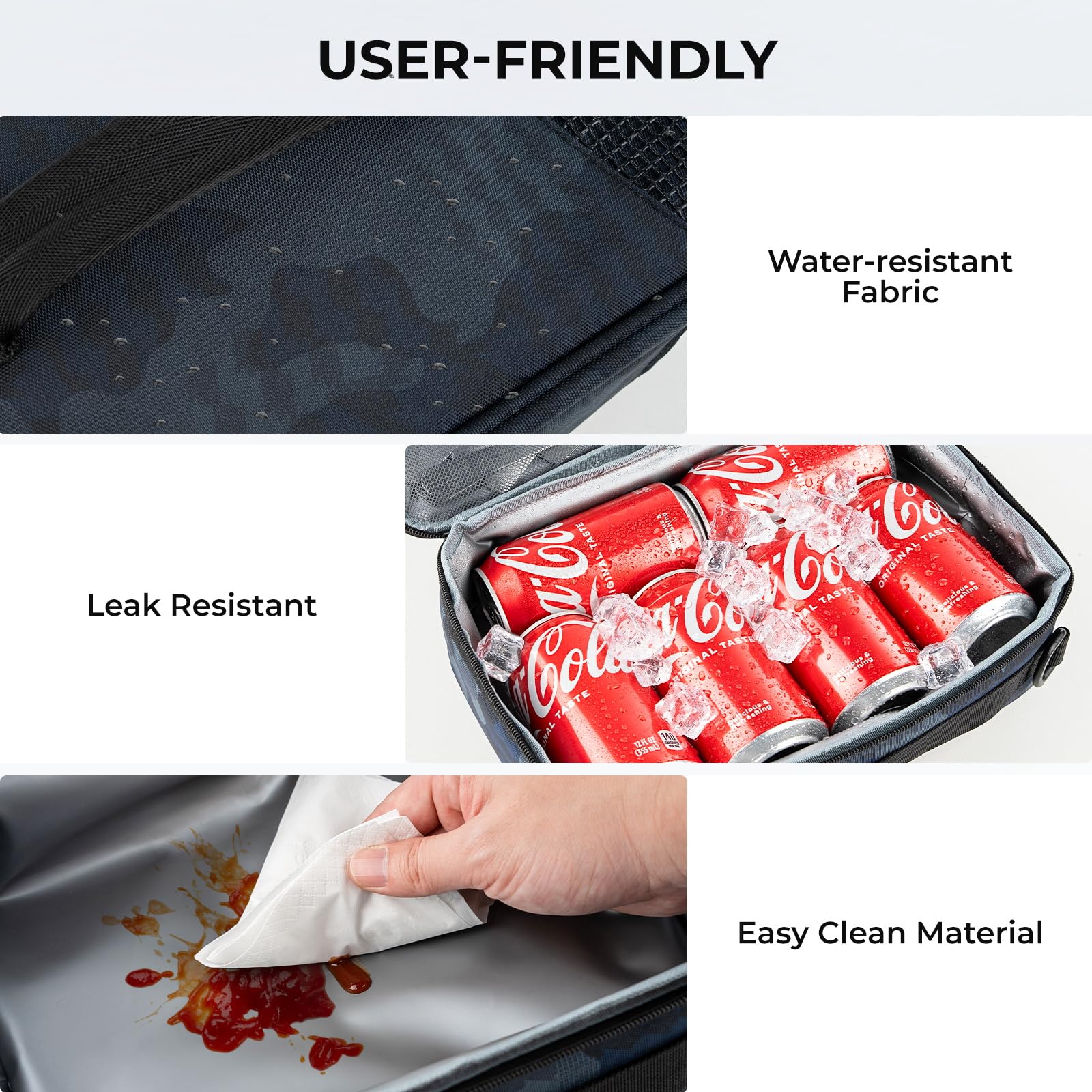 - Leak-resistant & Easy to Clean: Built with a 100% PEVA liner and seamless pressure-bonding technology, the BaitSpace lunch bag resists leaks and resists oil stains. The waterproof interior lining allows for quick and effortless cleaning—just wipe down the surface to keep it looking fresh and ready for your next trip