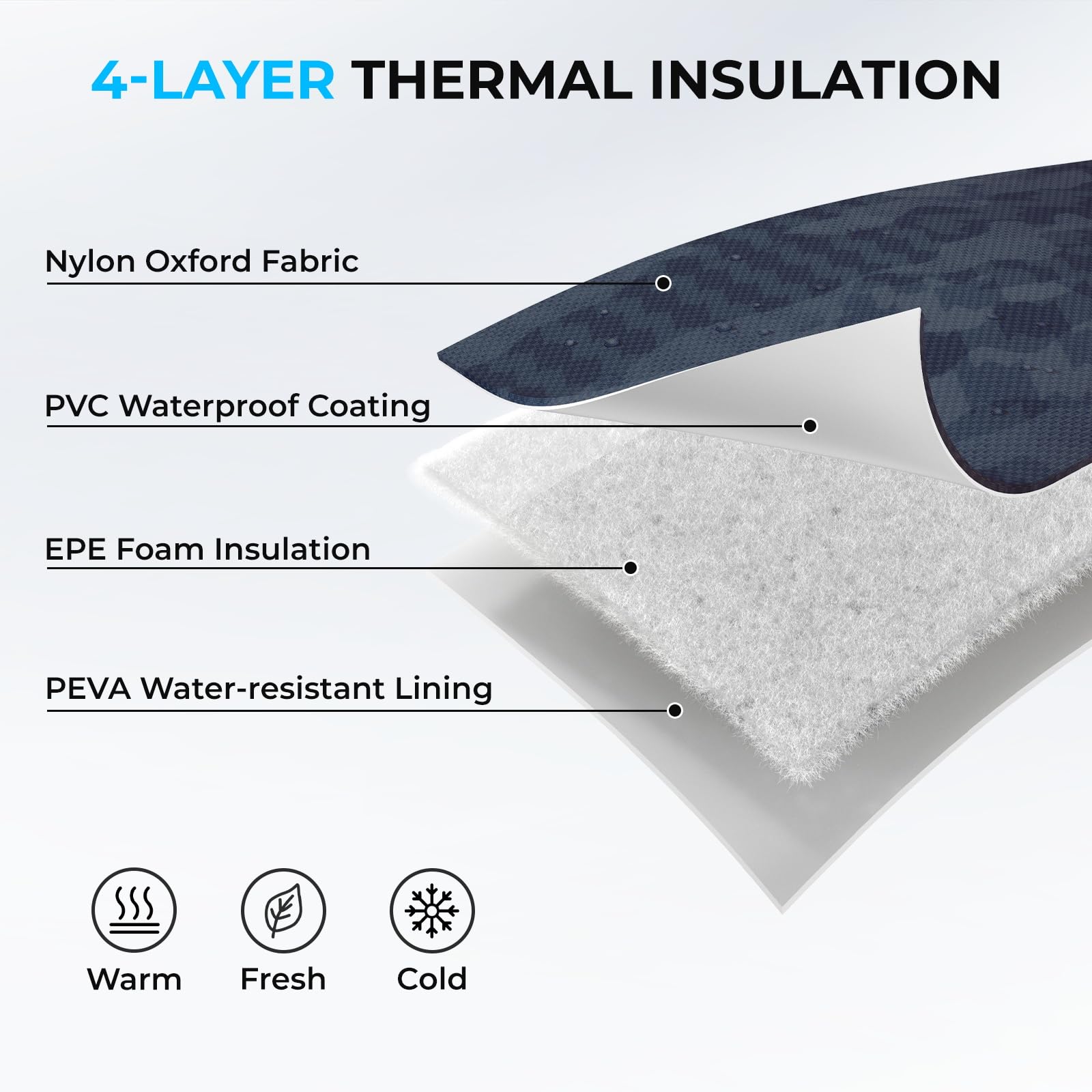 - Advanced Thermal Insulation: Featuring EPE foam insulation, a PEVA lining, and durable water-resistant nylon oxford fabric, this premium lunch bag ensures long-lasting thermal retention. Keep your meals and drinks fresh, warm, or cool for hours—perfect for all-day fishing, camping, boating, or work commutes