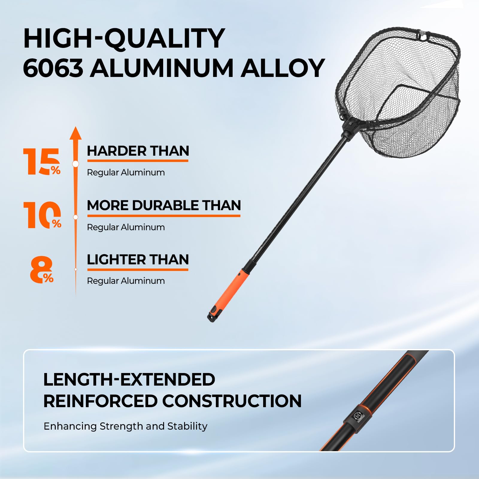 - High-quality Components: All KastKing Brutus Folding Landing Nets are built with high-quality 6063 Aluminum alloy for exceptional performance, reliable use, and durability. This material is stronger than other Aluminum alloys and can resist bending and cracking.