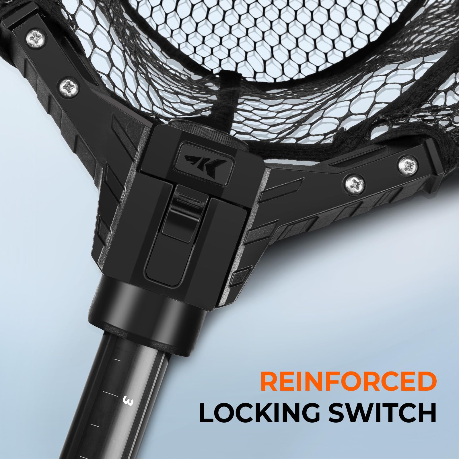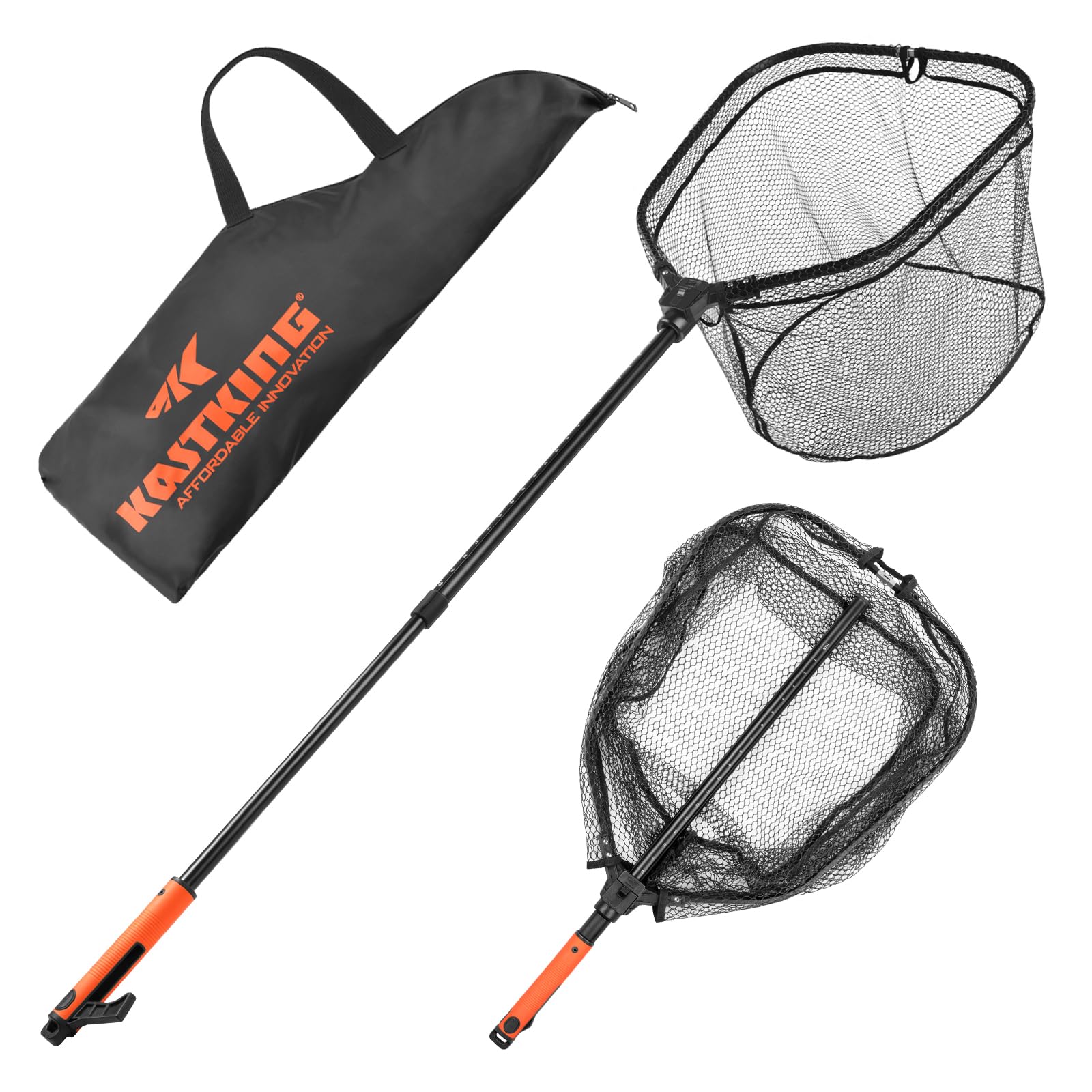 - Foldable & Retractable: Using a u-shaped design net hoop, the KastKing Brutus Folding Landing Nets feature a push-down switch for convenient storage. This switch is connected to the net frame and reinforced with four stainless screws. Quickly and easily pull down the release button to fold the net frame. In addition to the retracting handle, the net frame folds in half to reduce the size for easy storage and transportation.