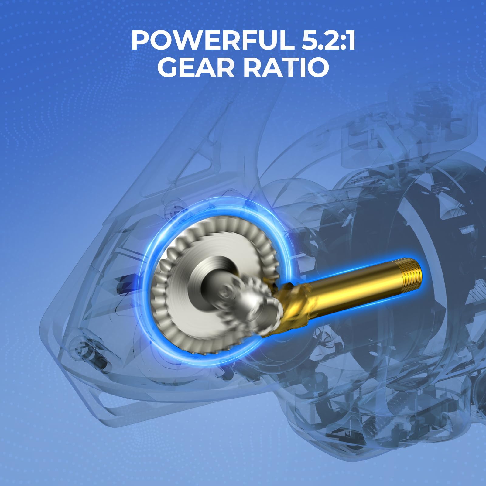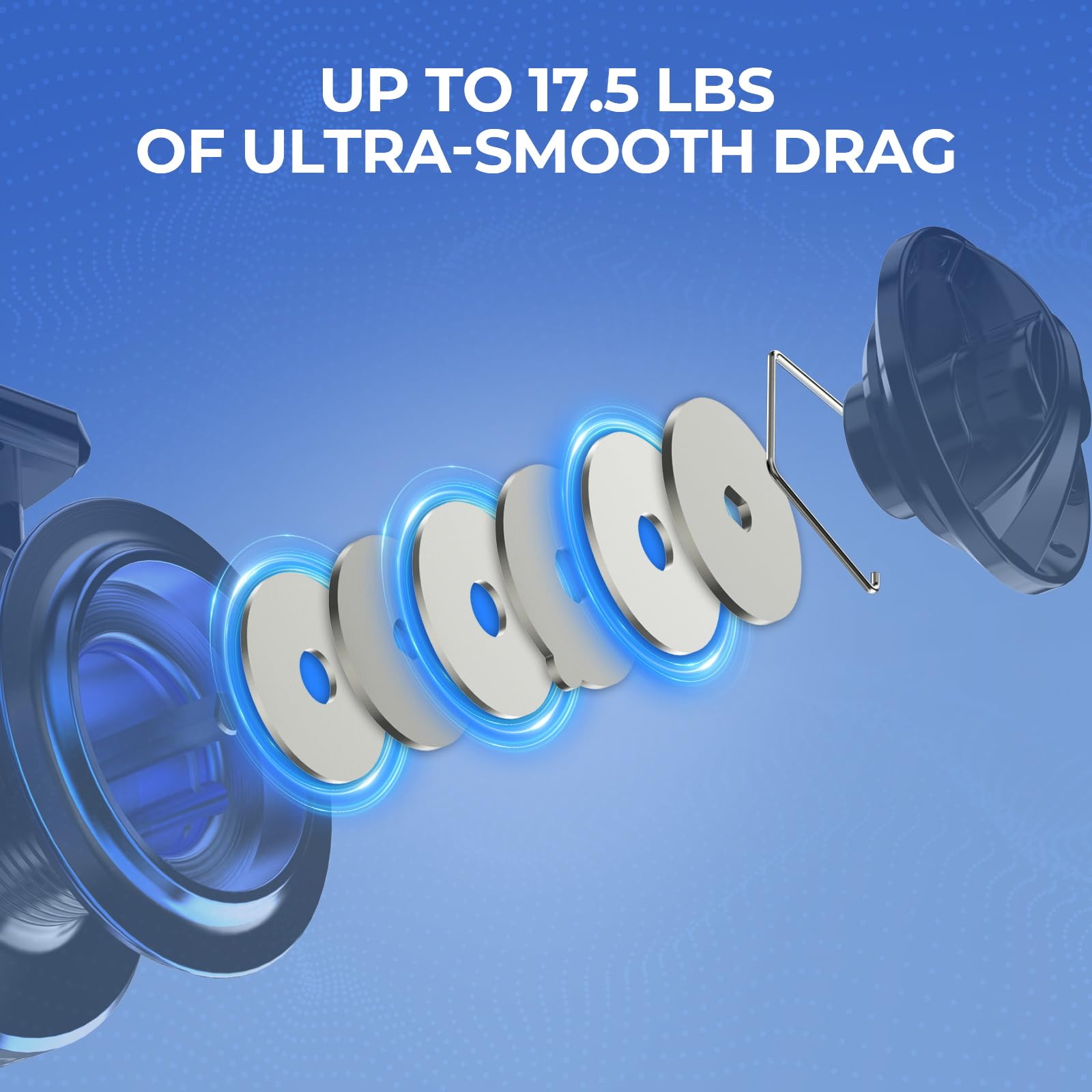 - Premium Reel Specs at a Value Price – The KastKing Centron Spinning Comb features a 5.2:1 gear ratio, 9+1 Maxi-Dur ball bearings, anti-twist line roller, light weight graphite frame and aluminum spool. The super smooth reel action is complemented by a powerful triple disc felt drag system.