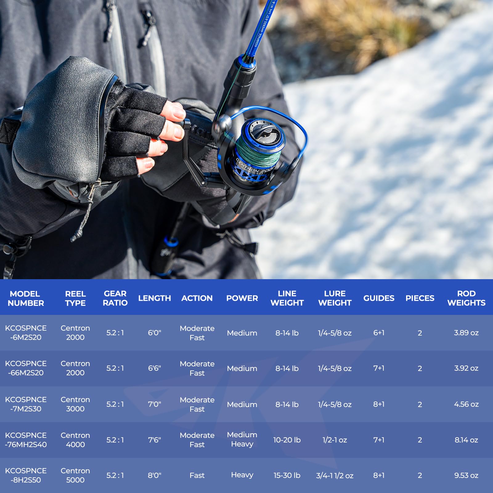 - Includes Centron Spinning and Baitcasting Reel – Each combo includes a perfectly matched KastKing Centron spinning reel that matches the rod and the type of fish that it is intended for. Reel sizes start at a compact size 2000 and go all the way to a powerful size 5000 that is perfect for the 8’ heavy action rod intended for Catfish, Salmon and Steelhead.
