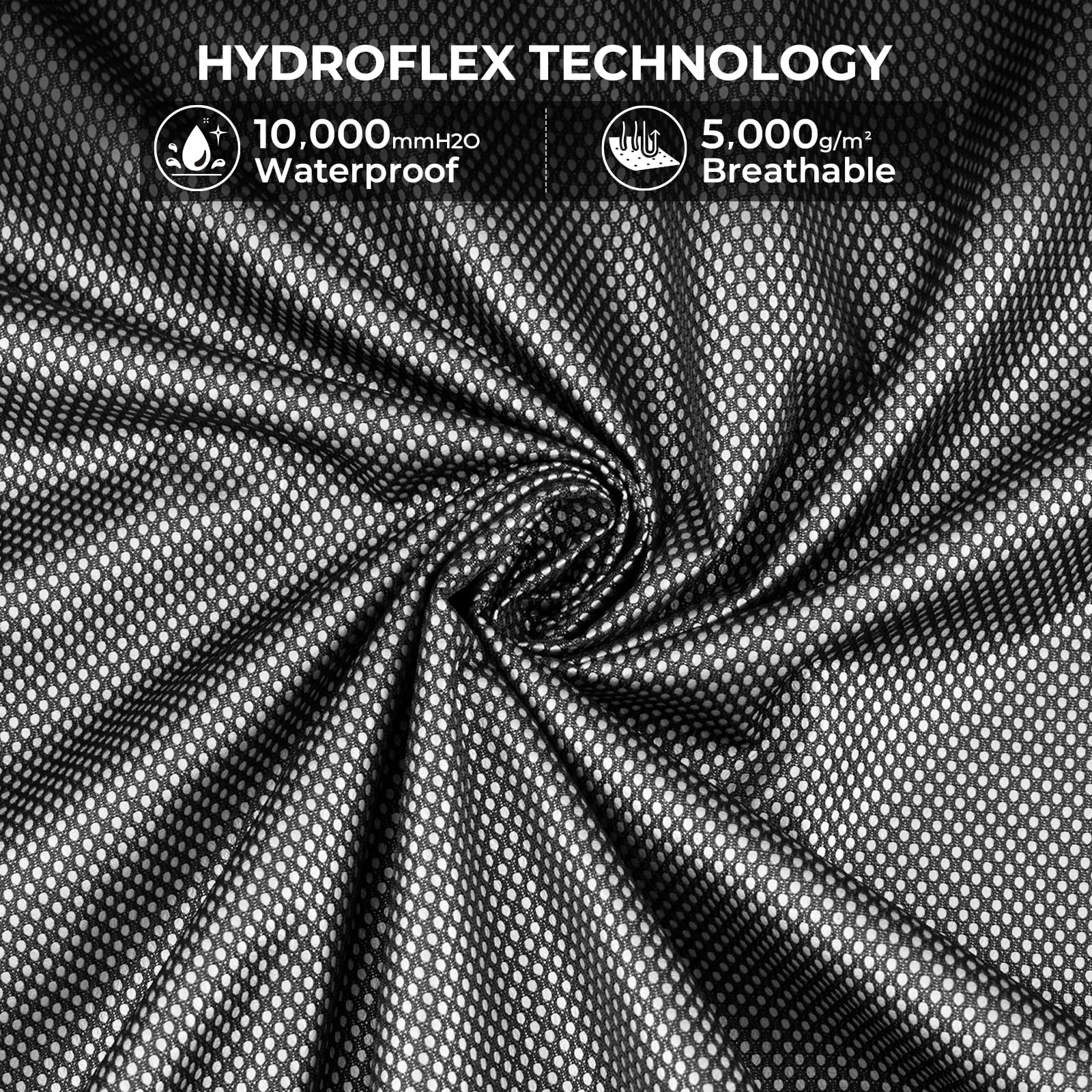 - Waterproof & Beathable With HydroFlex Technology: Crafted with innovative 3-layer construction, our HydroSense Rainsuits feature a DWR 100% polypropylene fiber outer layer, a middle HydroFlex membrane that’s waterproof and breathable (10,000mmH2O, 5,000g/m²), and a breathable mesh lining. This advanced design effectively blocks out the elements while allowing excess heat and moisture to escape, ensuring you stay dry and comfortable in any conditions.