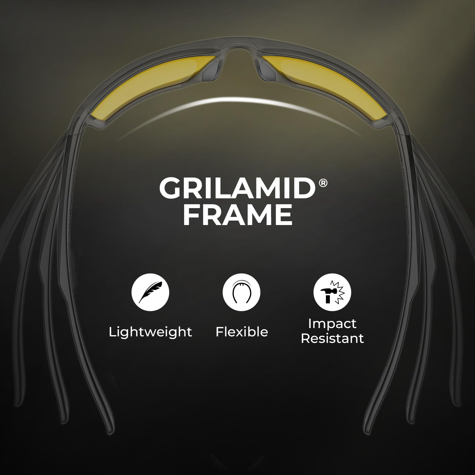 - Superior Frames - Crafted with Grilamid material, known for its military and medical applications, The frames of KastKing night vision glasses are lightweight, highly flexible, and resistant to heat and UV rays. You'll enjoy a comfortable fit that lasts, thanks to the ultra-lightweight material.