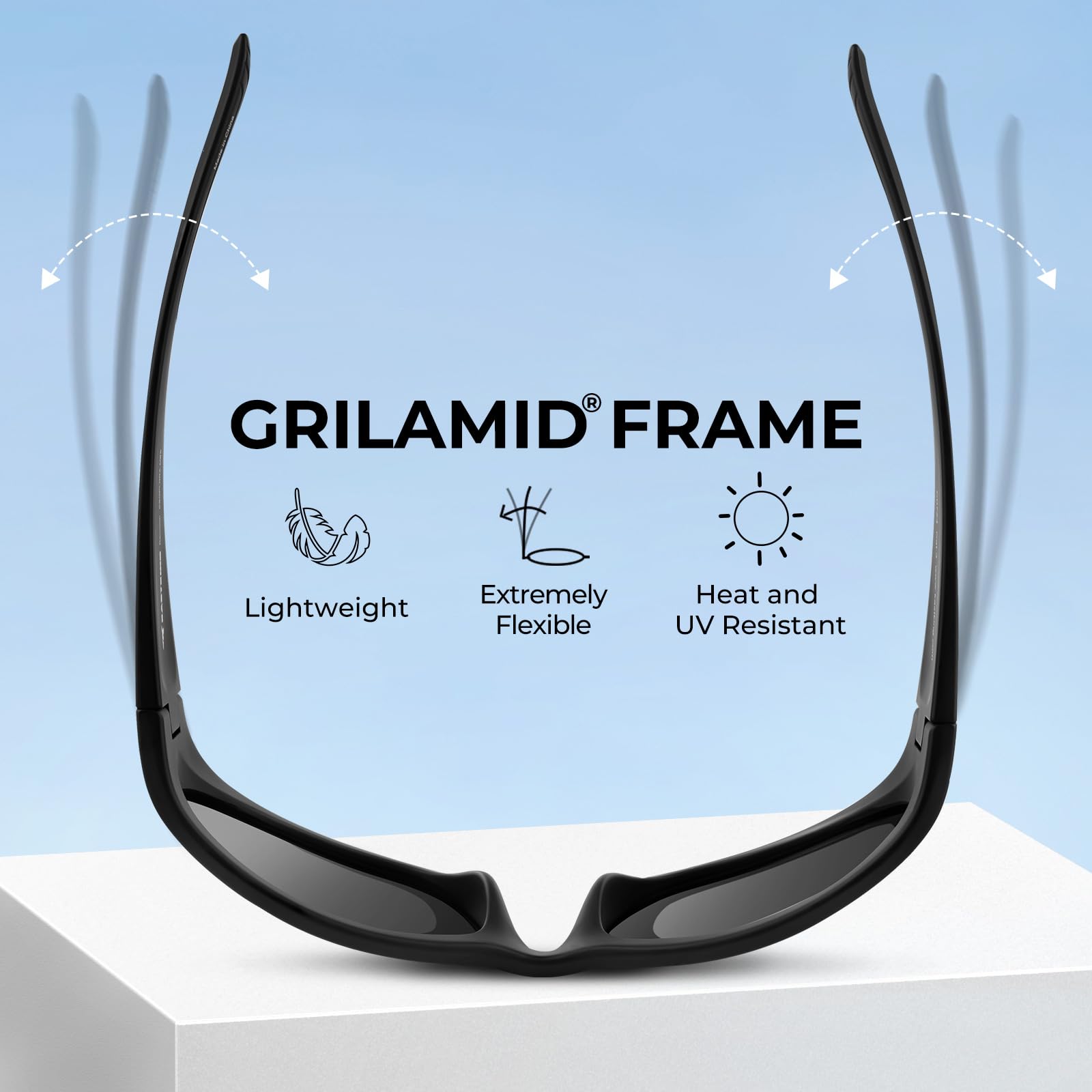 - WIDE TEMPLE WRAP DESIGN – KastKing Raccoon Polarized Sport Sunglasses are design with wide temple wrap, which blocks side-light offering maximum coverage. Made from the same Grilamid material commonly used by the military and in medical applications, the frames are well known for their strength, lightweight comfort, extremely flexible, heat and UV resistant, and impact-resistance. This ultra-lightweight material translates to a very comfortable fit.