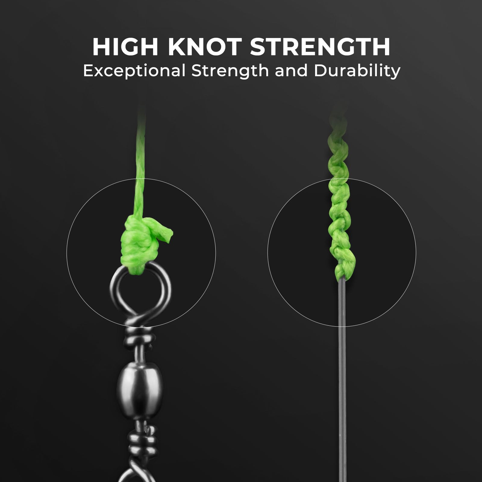 - High Knot Strength – The high knot strength of SuperPower ColorShield braided fishing line allows for effective casting, retrieving, and fighting fish without worrying about knot failures that could lead to lost fish.