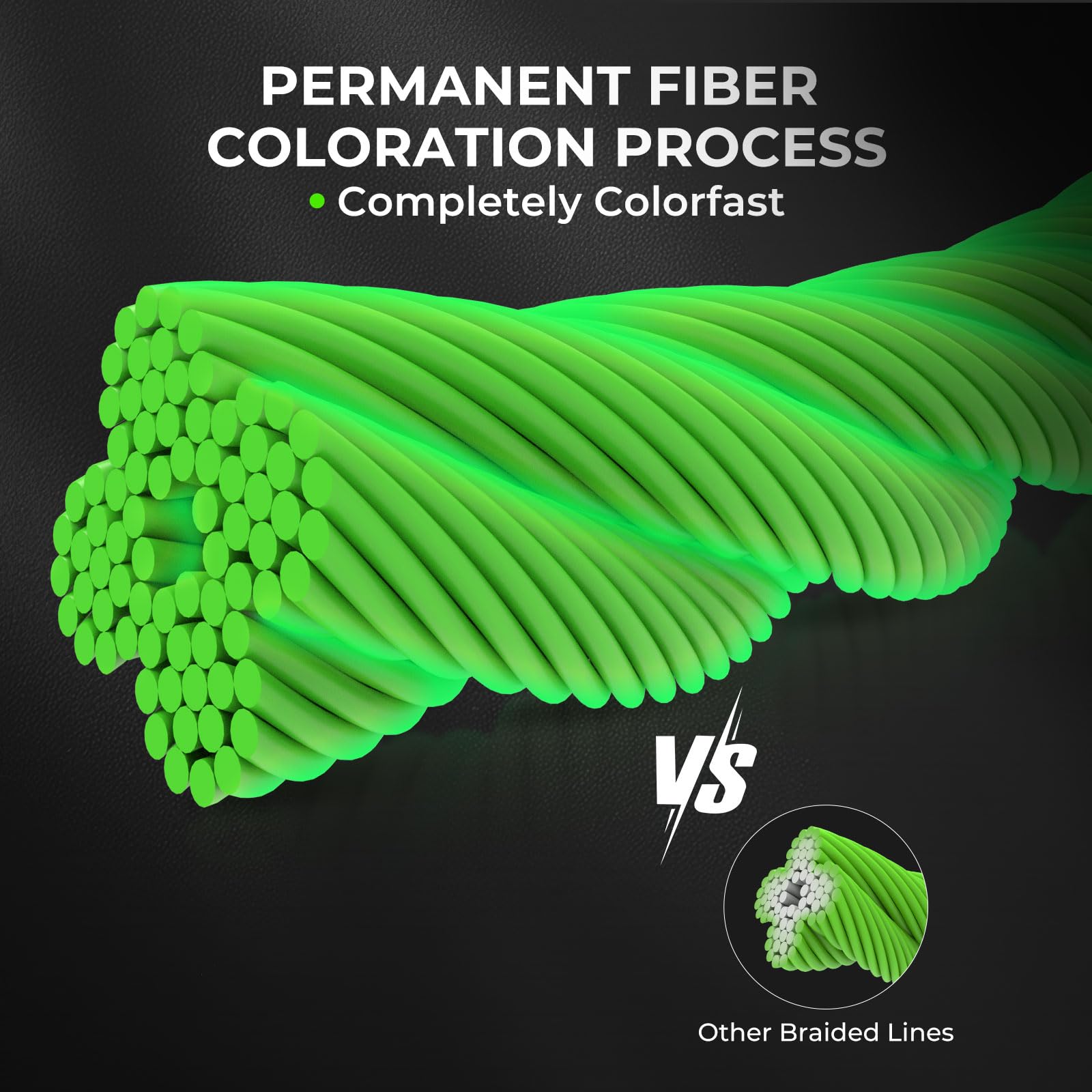 - Colorfast Permanent Coloration Process - SuperPower ColorShield braided fishing line is engineered with solution dyed UHMWPE for colorfast properties. Solution dyeing ensures that the color remains for the life of the line and does not bleed, maintaining its visual appearance. SuperPower ColorShield braided fishing lines have excellent colorfast properties, and retain their vibrant color with continued use, even after repeated exposure to sunlight, water, and harsh fishing conditions.