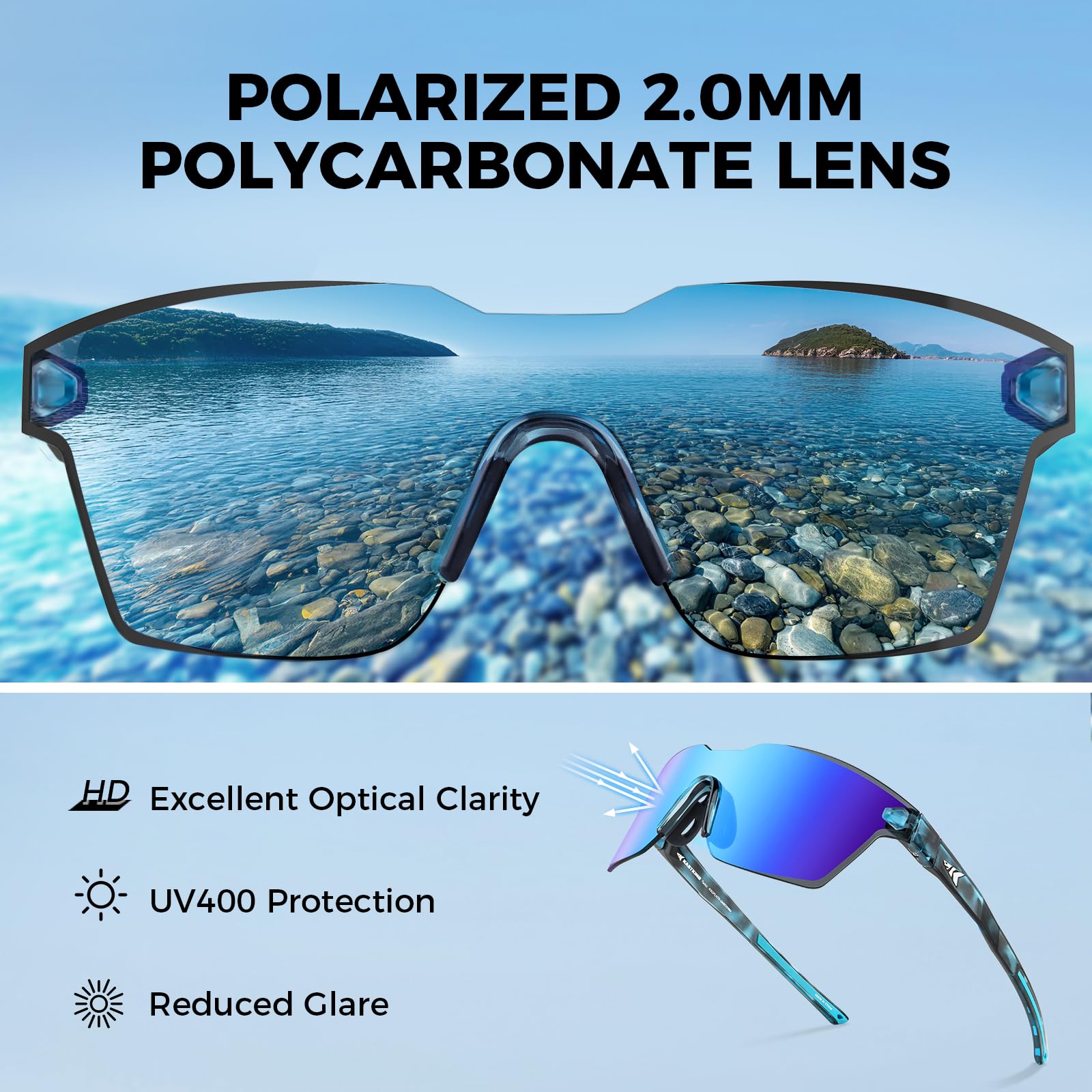 KastKing Tarkio Polarized Fishing Sunglasses, Large Single PC Lenses, Rimless Wrap Design, UV400 Protection Sports Sunglasses