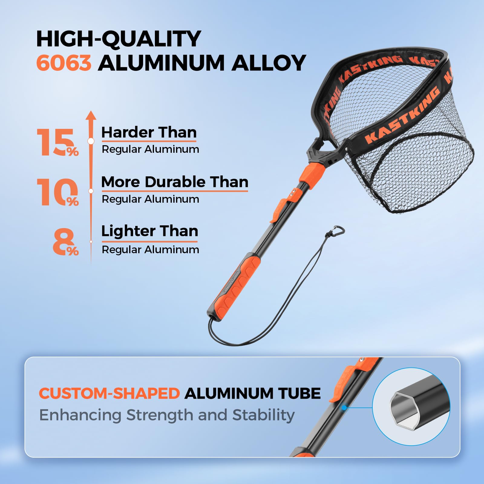 - Durable & Strong Handle: The KastKing Titanet landing net features a high-quality 6063 aluminum alloy handle with a custom-engineered tube profile for enhanced strength. A durable molded locking head ensures a secure and reliable hold when landing fish.