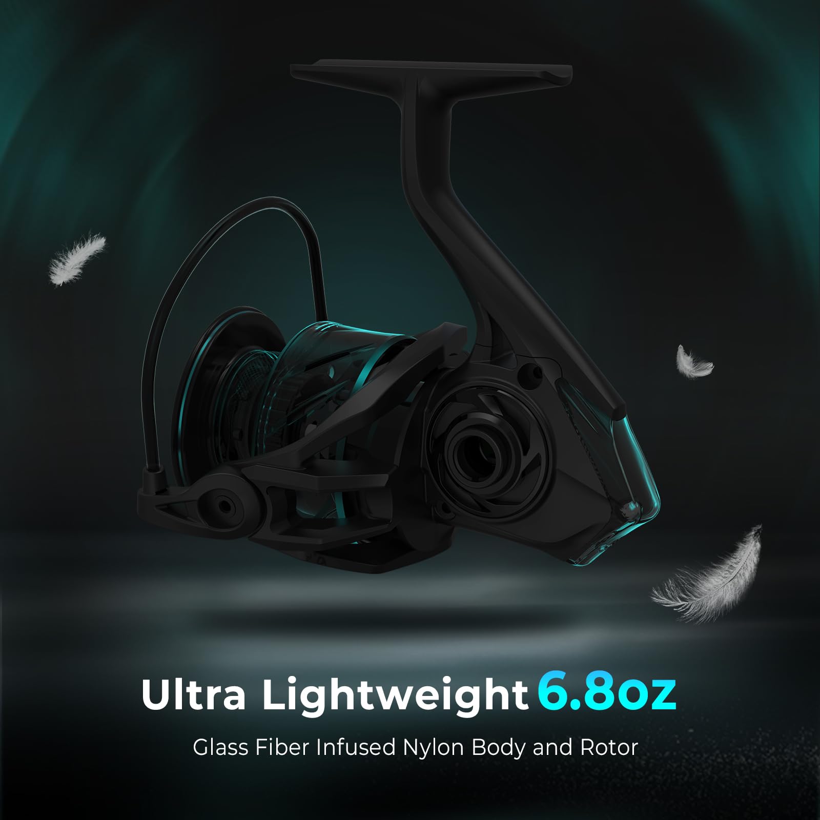 - Feather-Light Performance: Engineered with glass fiber infused nylon body and rotor, the Verus Spinning Reel performs like a reel costing twice as much and weighs only 6.8oz. Its aerodynamic reel rotor not only reduces weight but elevates performance, ensuring an unrivaled fishing experience that's both agile and powerful.