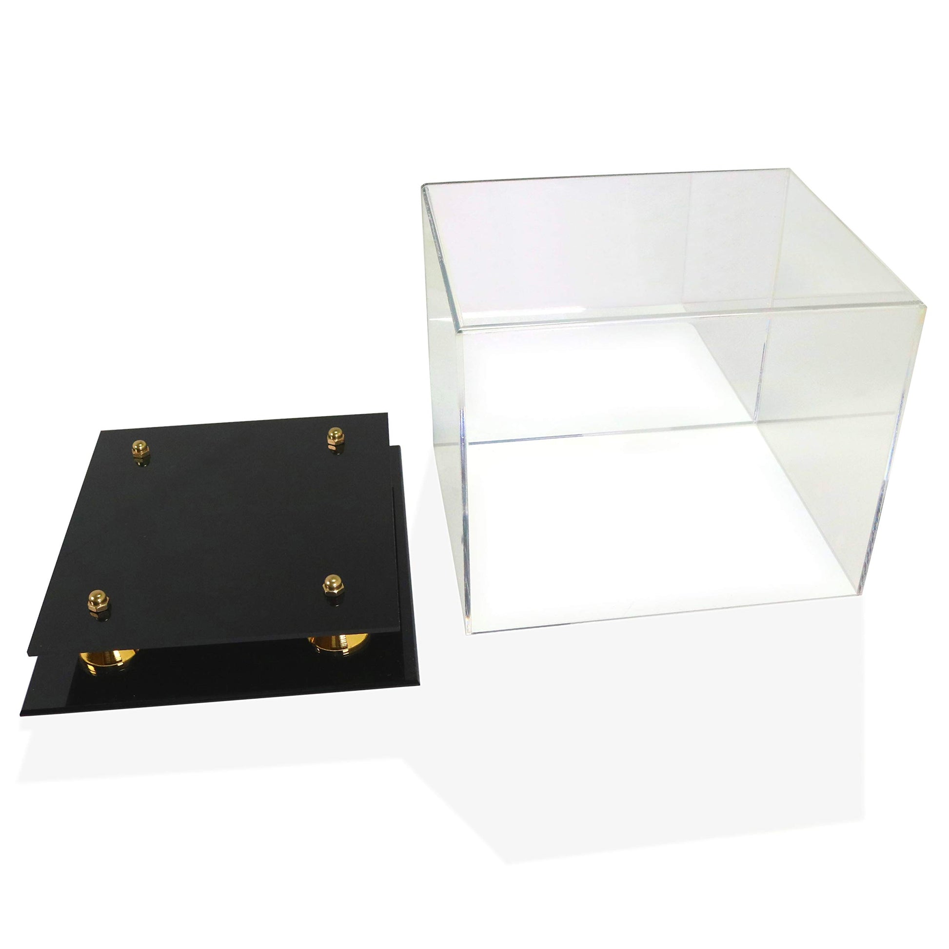 - Equipped with a two-tiered polished black base with elegant gold metal risers. Our hat display case provides the ultimate protection to dust, spills, fingerprints and sunlight fade