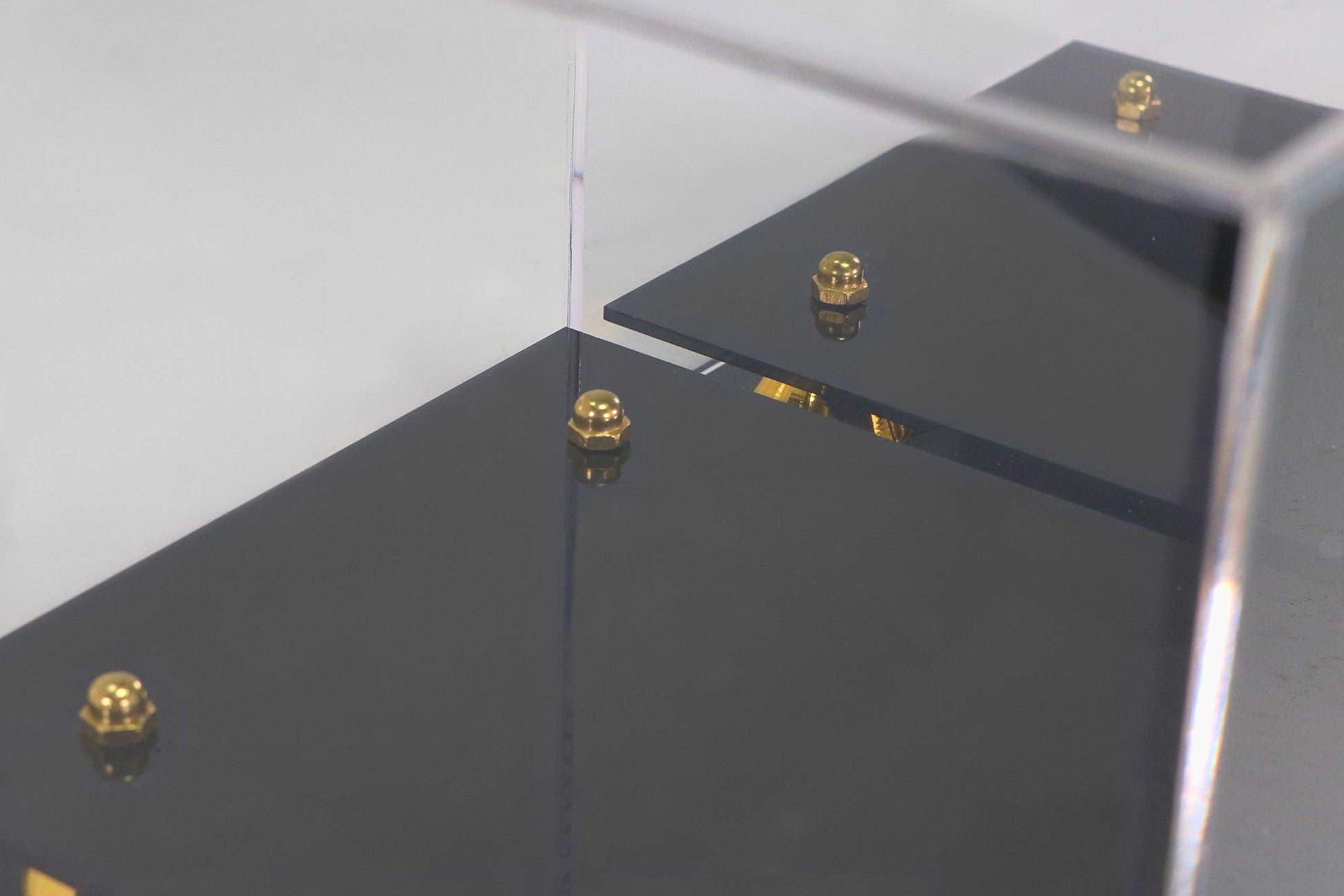 - Our hat display case is made from durable, high-quality crystal clear acrylic. Equipped with a flawless mirrored rear side, providing a fuller appearance