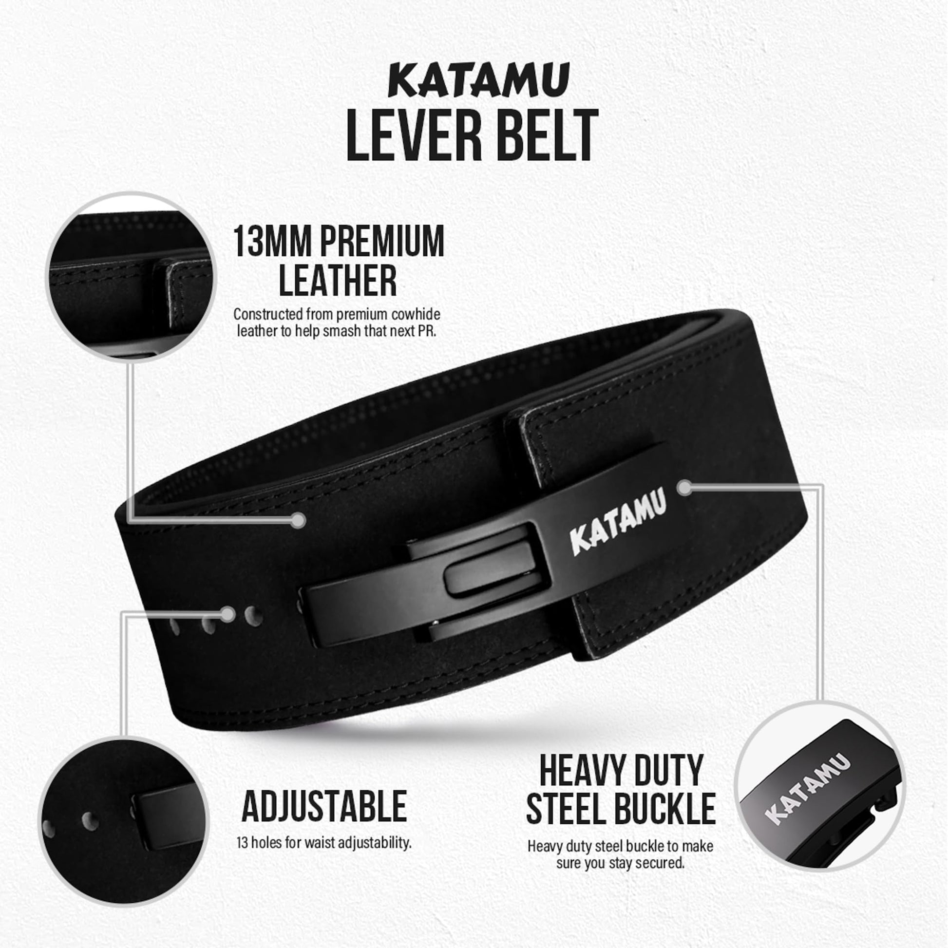Katamu Ruthless Premium Weightlifting Belt - Lever Weightlifting Belt - Men and Womens Power Lifting Belt - Leather (Large)
