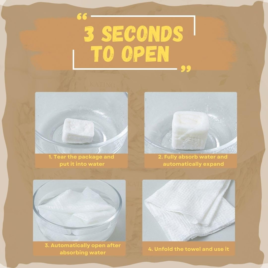 - 💧 Water-Activated Expansion: Add a few drops of water to transform the compact towel into a full-size, ready-to-use cloth.