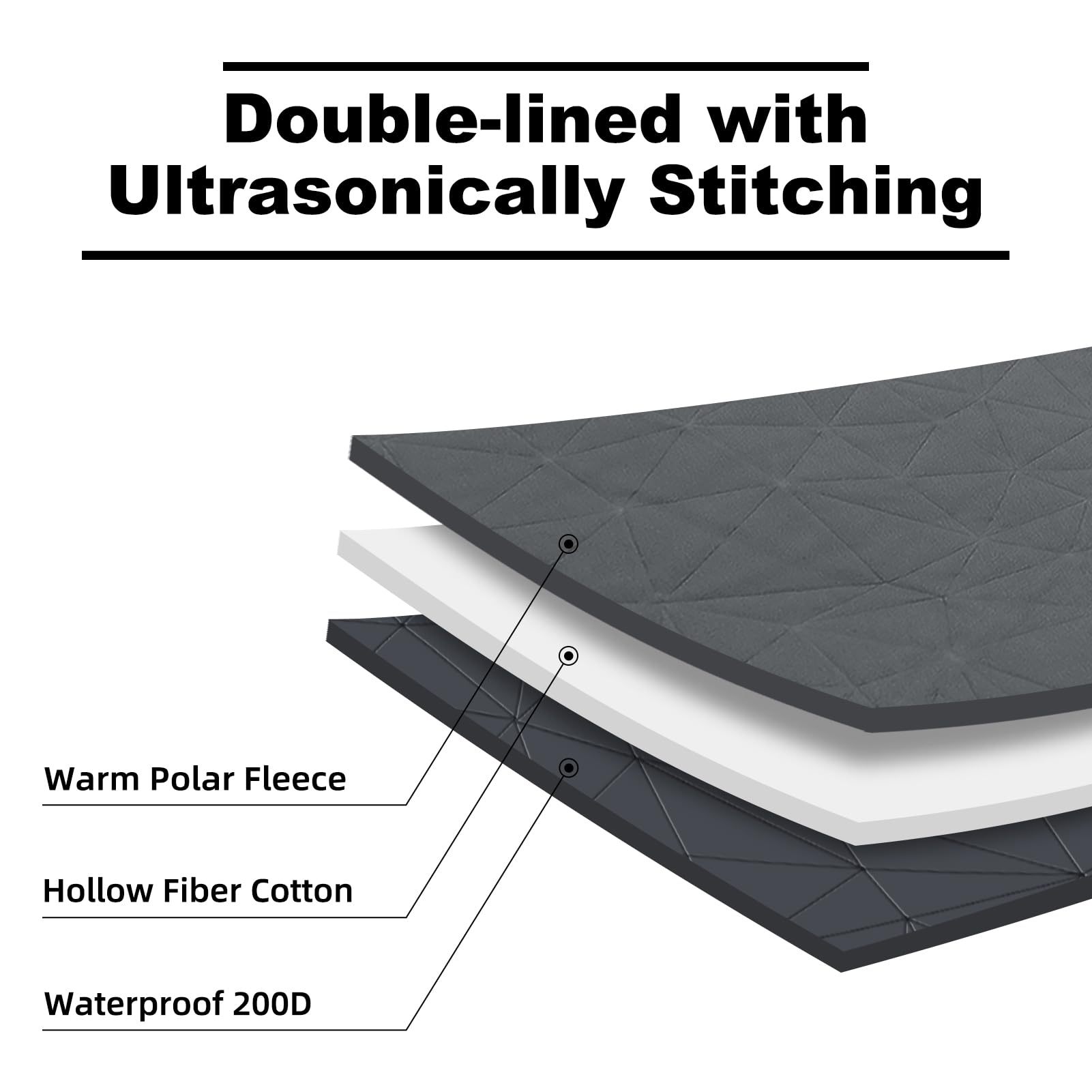 - Terrain Lines Quilted:The ultrasonic stitching technology enables the 210G waterproof oxford fabric and the 360g polar fleece material to be closely bonded. The 100g cotton lining in the middle makes the waterproof outdoor blanket more flexible and warm.