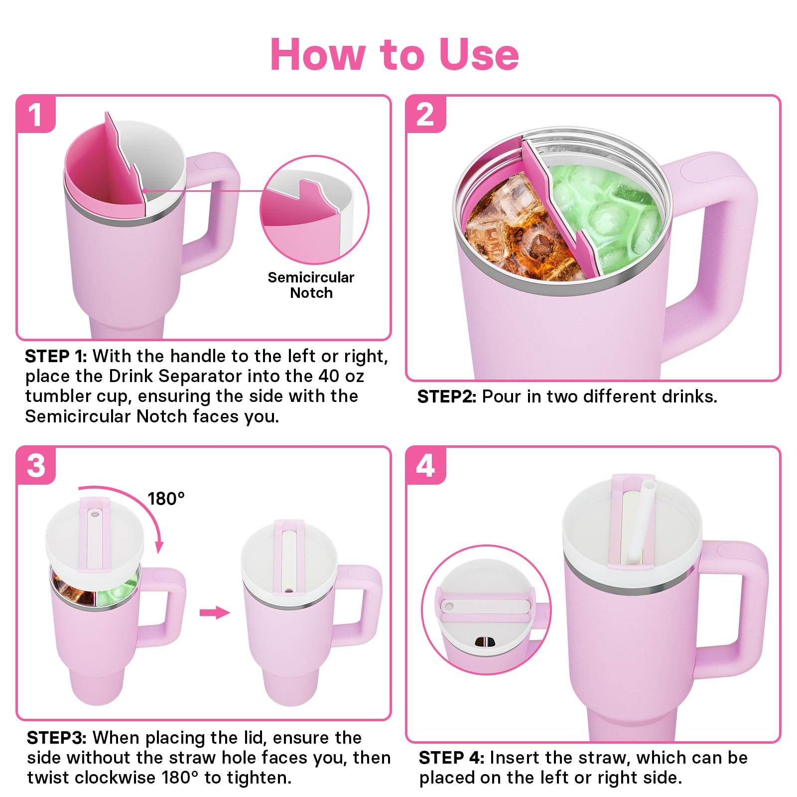 Kawaiita 2-in-1 Drink Separator Silicone Liner Compatible with Stanley Cup 40 oz, Stanley Accessories, Reusable Liner for Cold Drink Separator for Coffee, Juice, Cocktails, Whiskey (Pink and White)