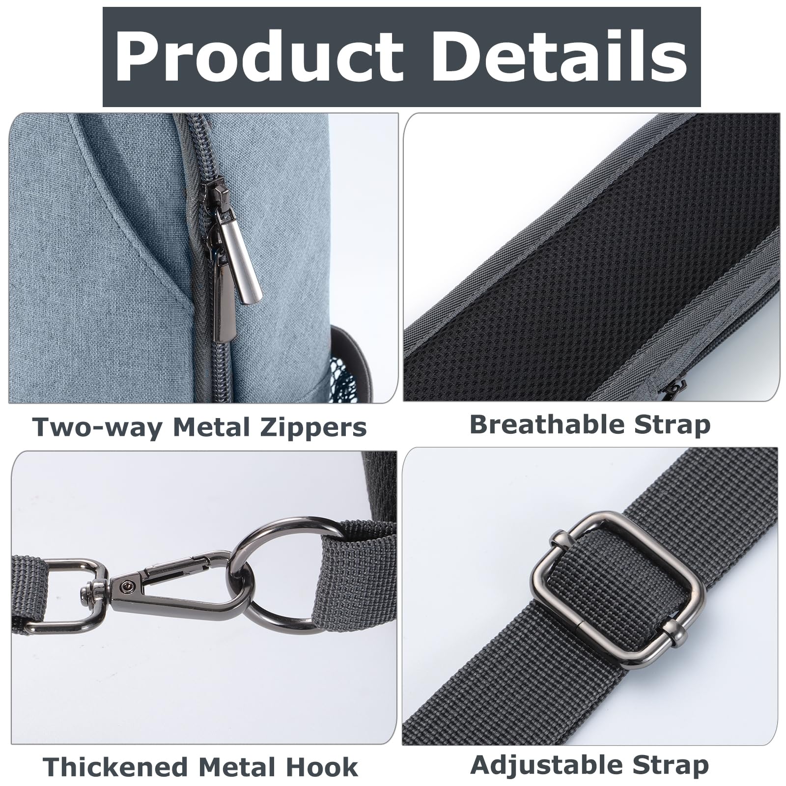 - 【Applicability】This anti theft sling bag adopts breathable material, absorb human sweats easier and offer a comfortable wearing experience. The bag strap is approx 38-42 inches long and can be adjustable to suit for different sized human body. The bag strap is reversible, so you can carry it the way you like, left or right, and the lowkey unisex outlook makes this small sling backpack suits men and women.