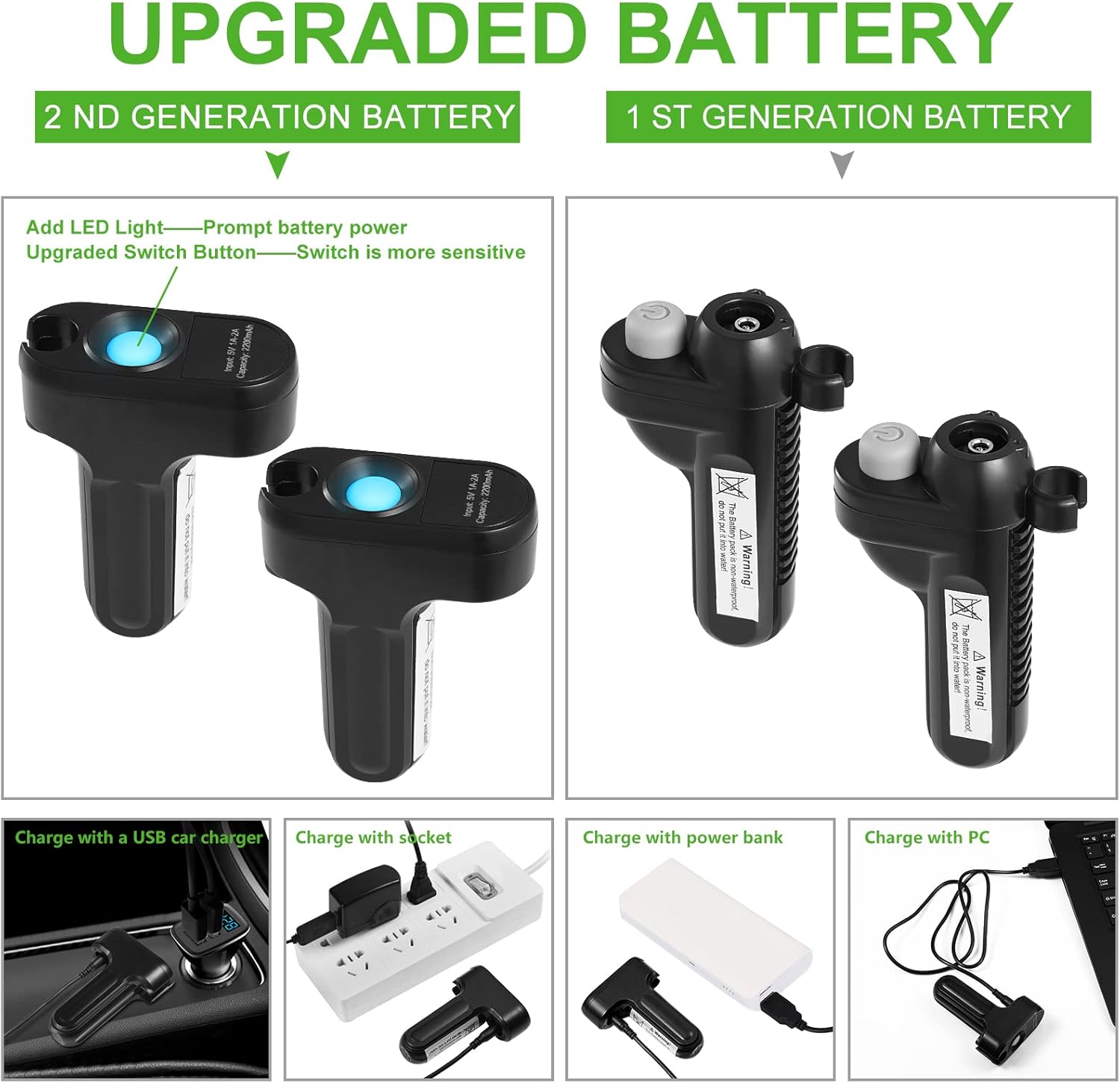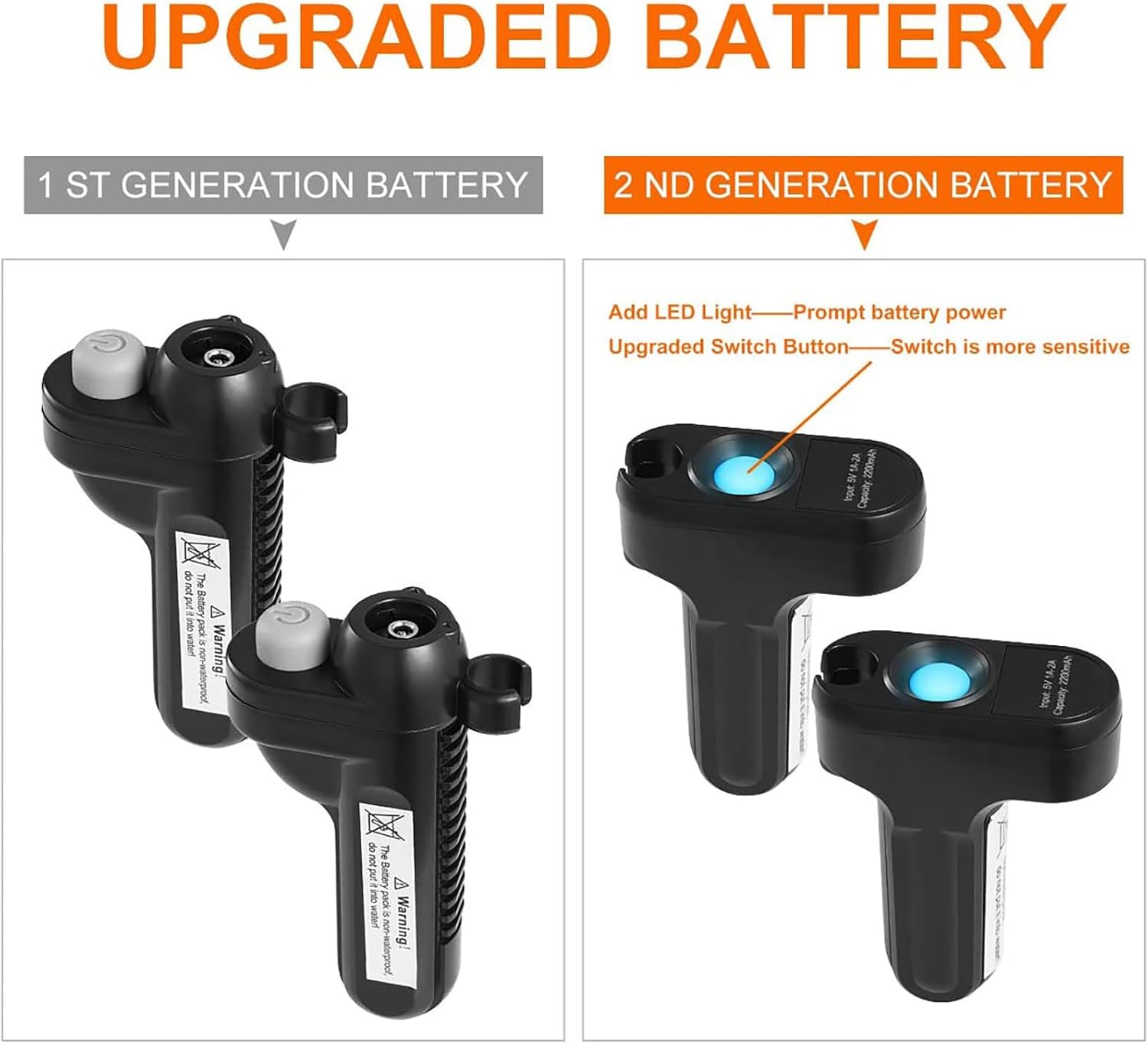 - ▶ Model Number: GFS-1701 Upgraded Version: Come with TWO detachable USB rechargeable batteries, separated from the pump. External on/off switch feature, which is an improvement over previous design.No need to immerse the batteries into water,which can protect and enhance the batteries life.Additional