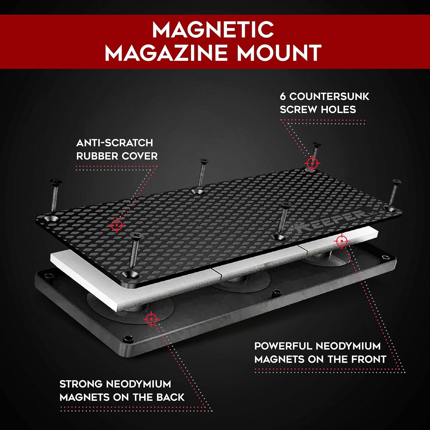 Keeper MG Magnetic Ammunition Holder for Gun Magazines and Clips, Organize Mount in Your Gun Safe, Locker Cabinet, Vault, Ultimate Ammo Storage Accessories for Handgun, Oistol and Rifle Mags, Black