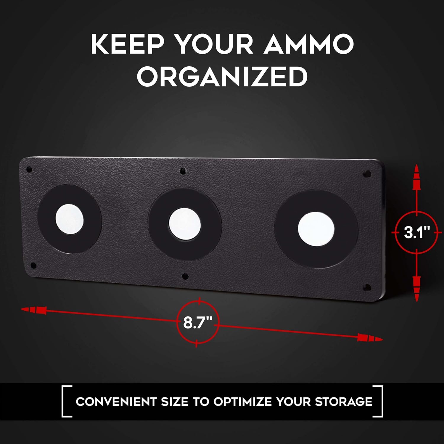 Our magnetic ammunition holder works with almost all brands and holds up to 7 metal magazines firmly and securely.