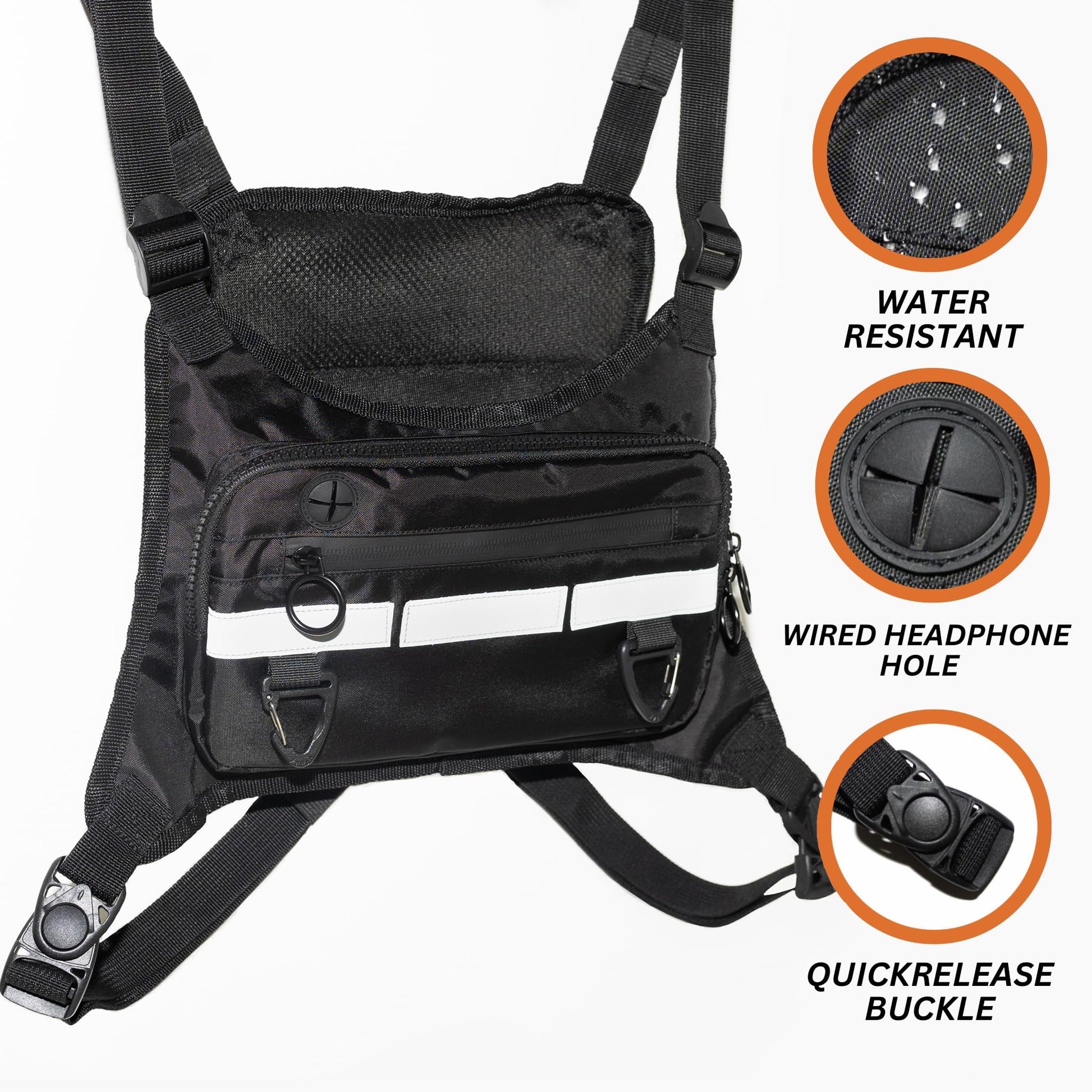KeepItOrg Chest Bag for Men and Women – Running Vest with Reflective Strips – Tactical Chest Rig for Sports, Cycling, Workout, Hiking – Lightweight and Water-Resistant Chest Pack with Phone Holder