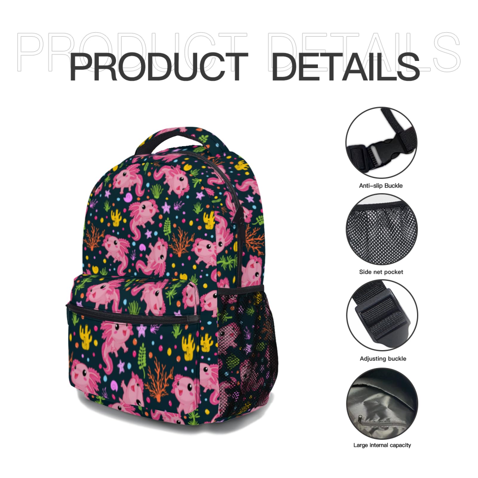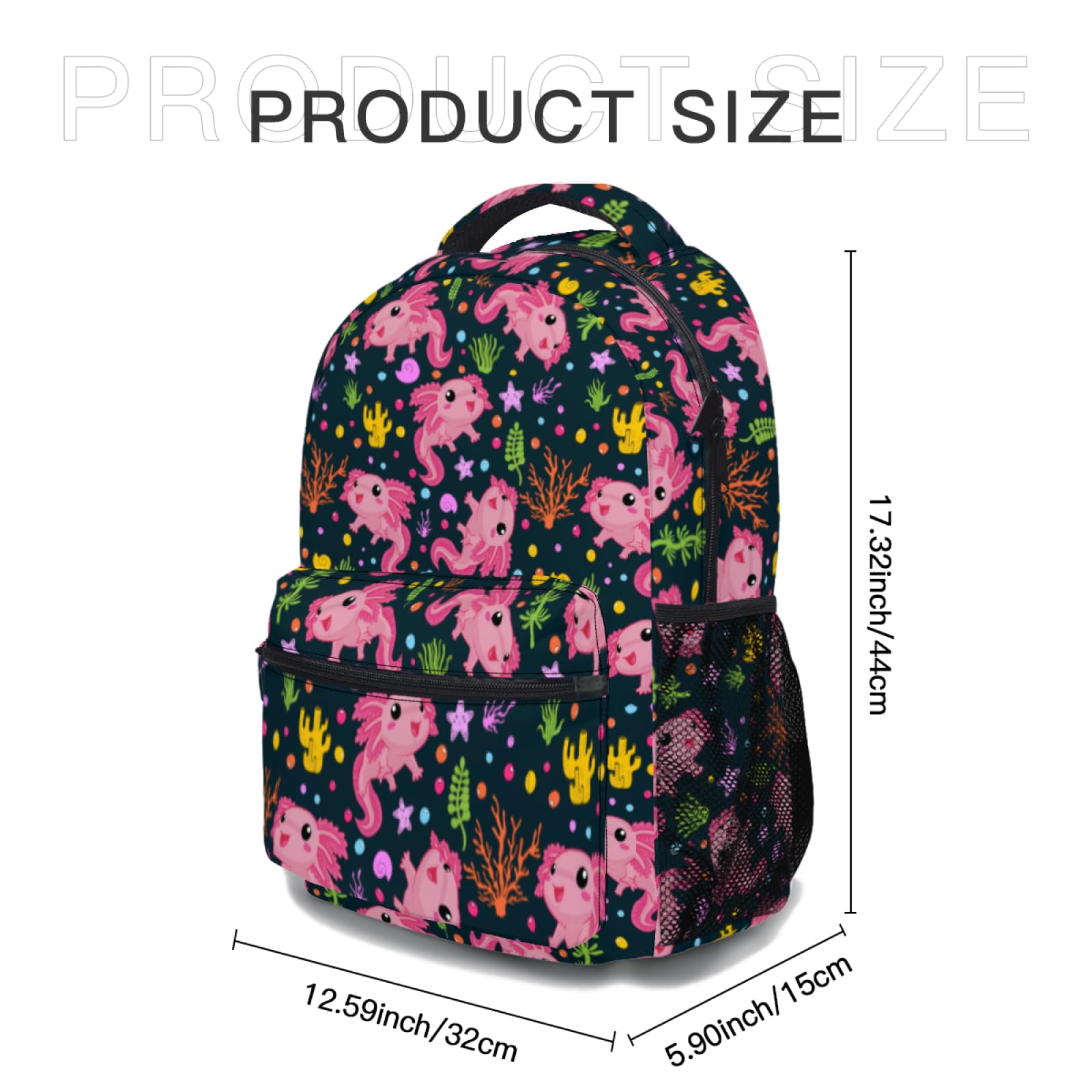 Keiutexe Axolotl Salamander Backpack With Adjustable Padded Shoulder Straps 17 Inch Daypacks For College Travel