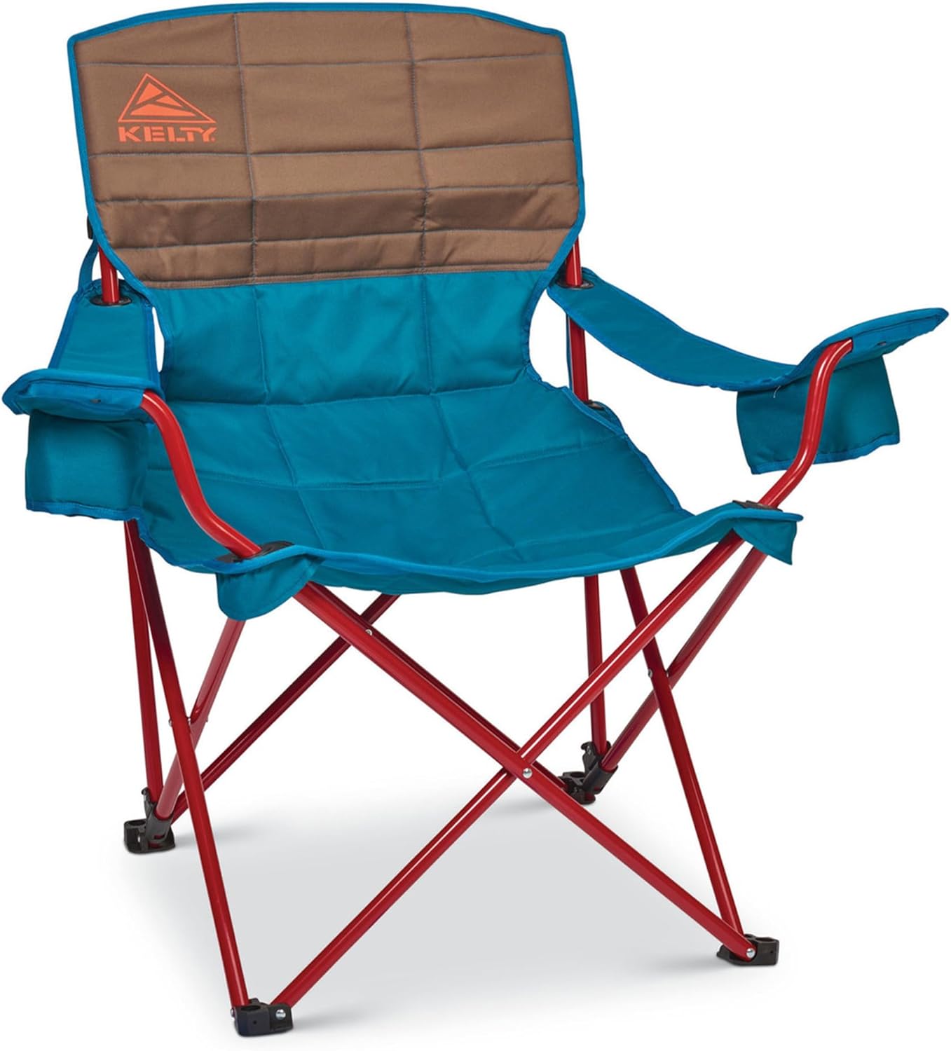 Kelty Deluxe Lounge Chair – Folding Outdoor Camp Chair, Insulated Cupholders, Customized Recline, Steel Frame, Padded Roll Storage, 2024 (Deep Lake)